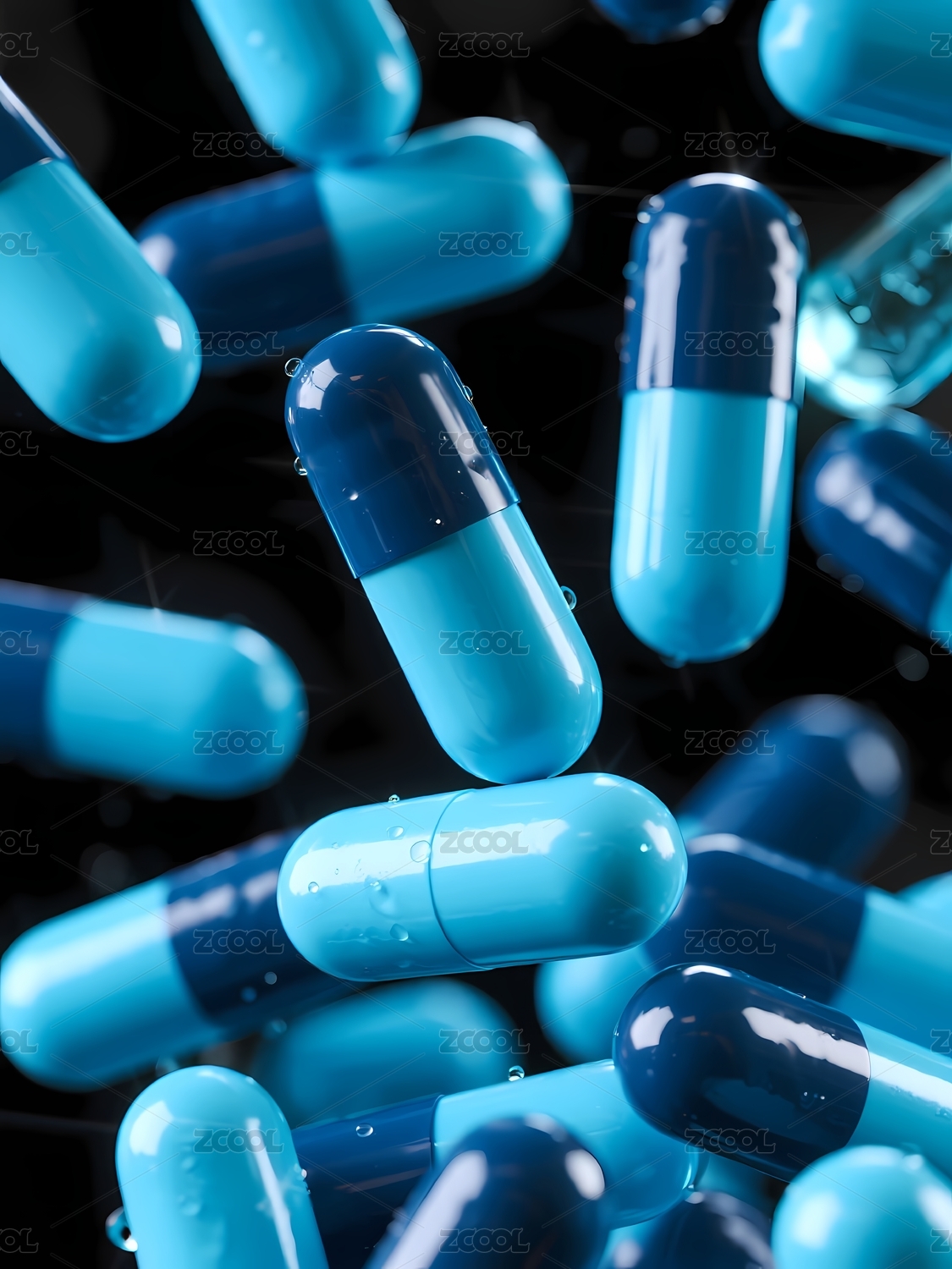 蓝色胶囊药丸悬浮动态