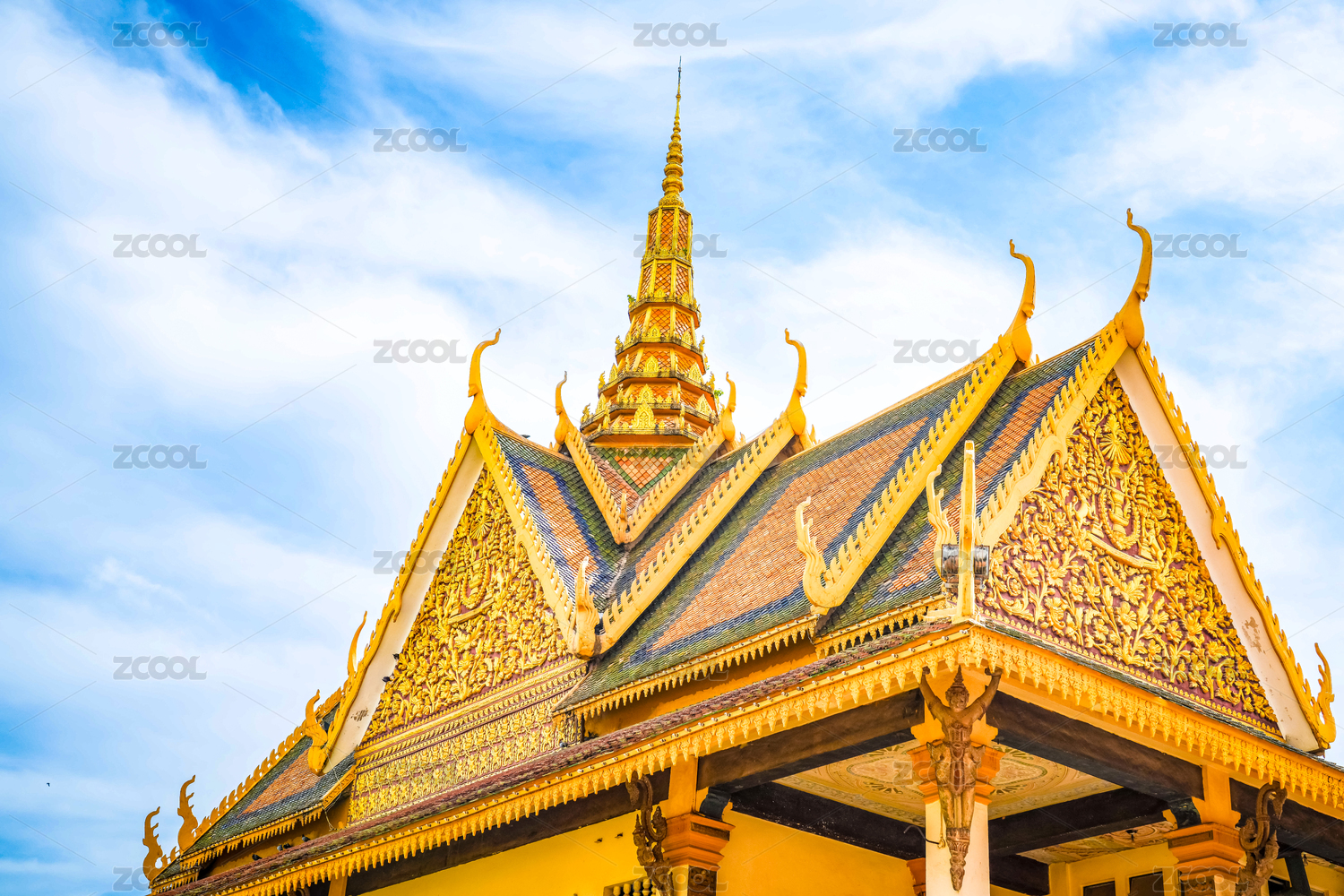 亚洲泰国大皇宫台阶两旁金佛手特写
