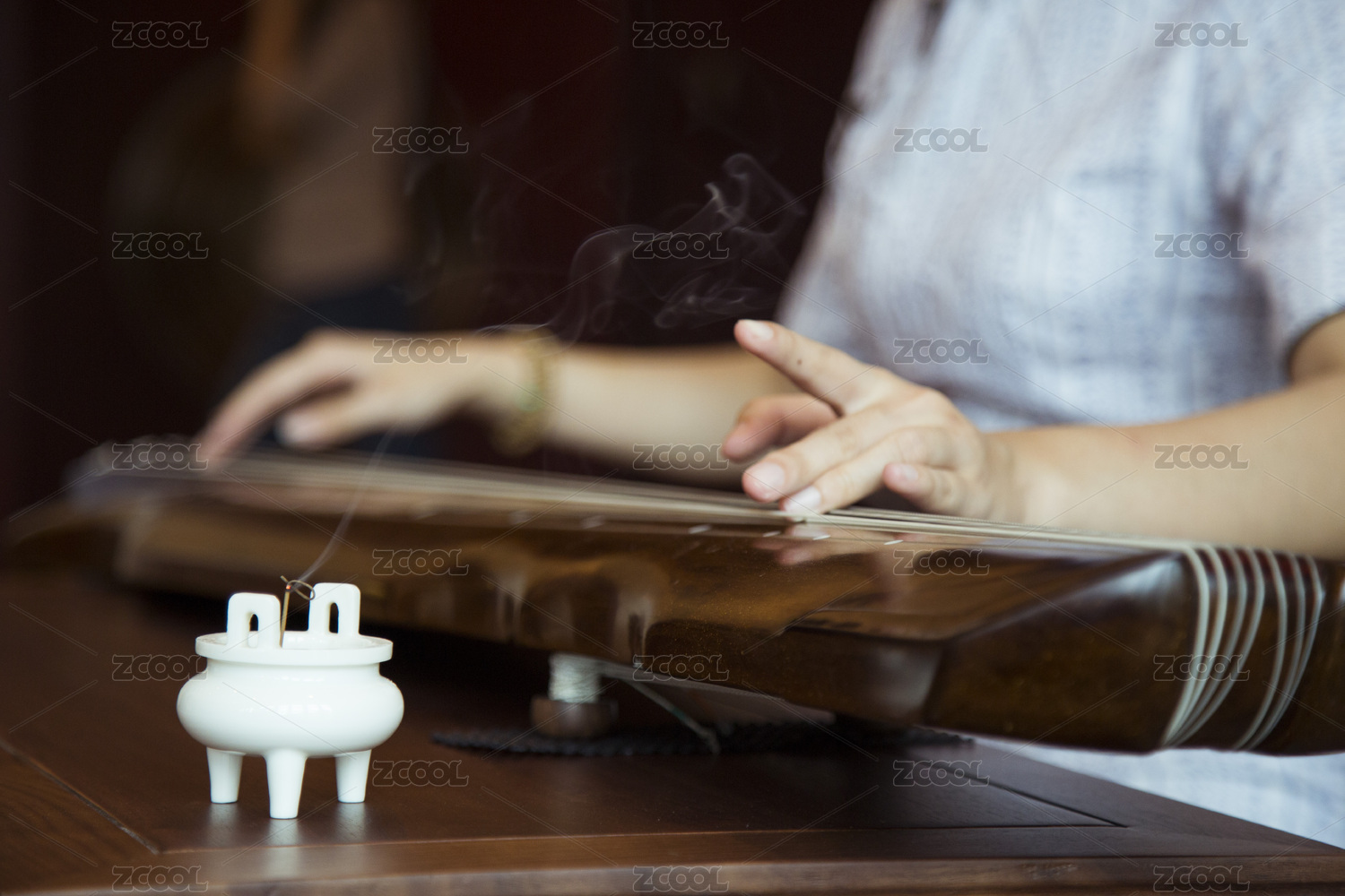 一张有弹古琴女子和许仙白娘子的装饰插画