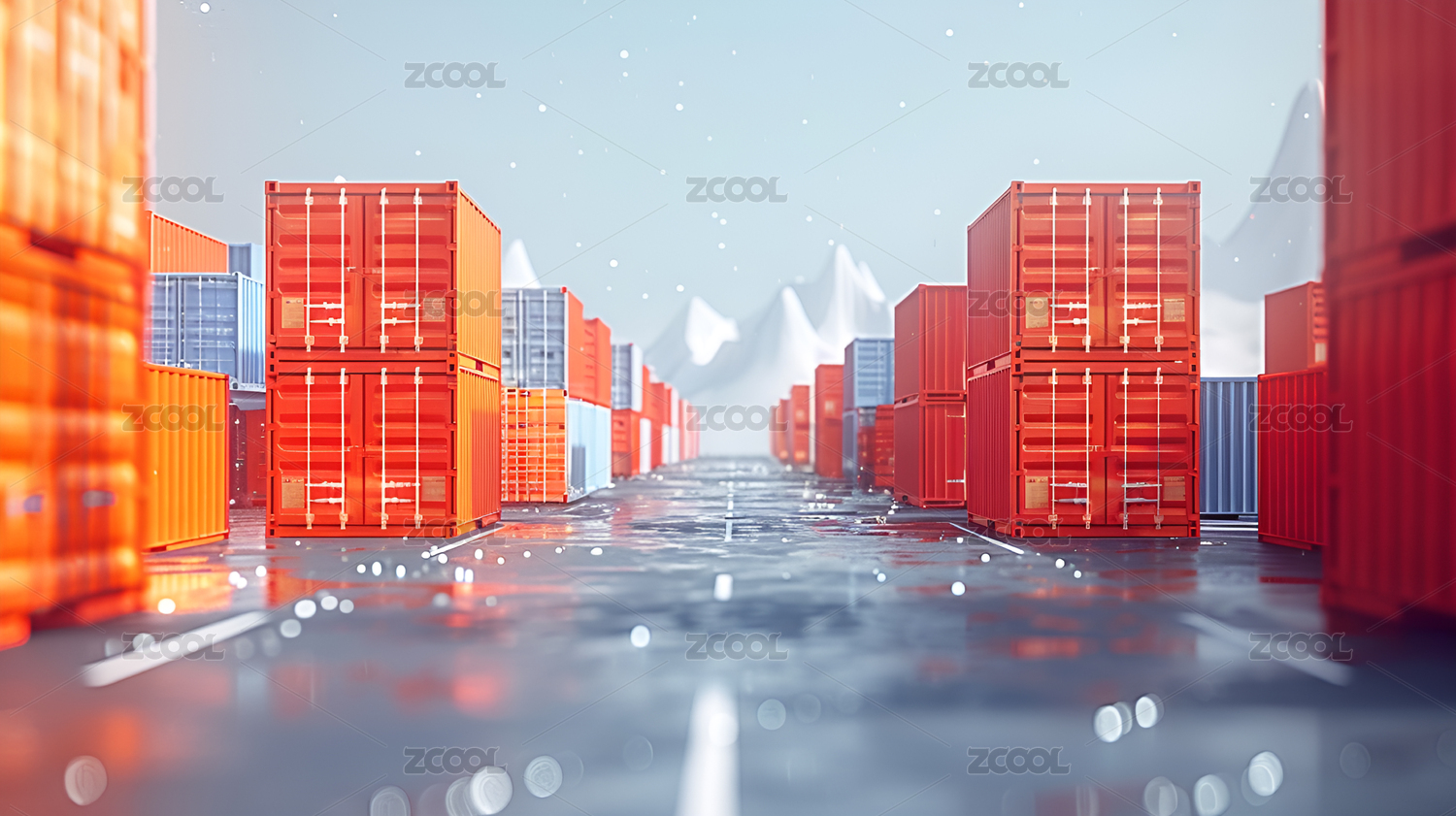 空的路面和堆叠的集装箱