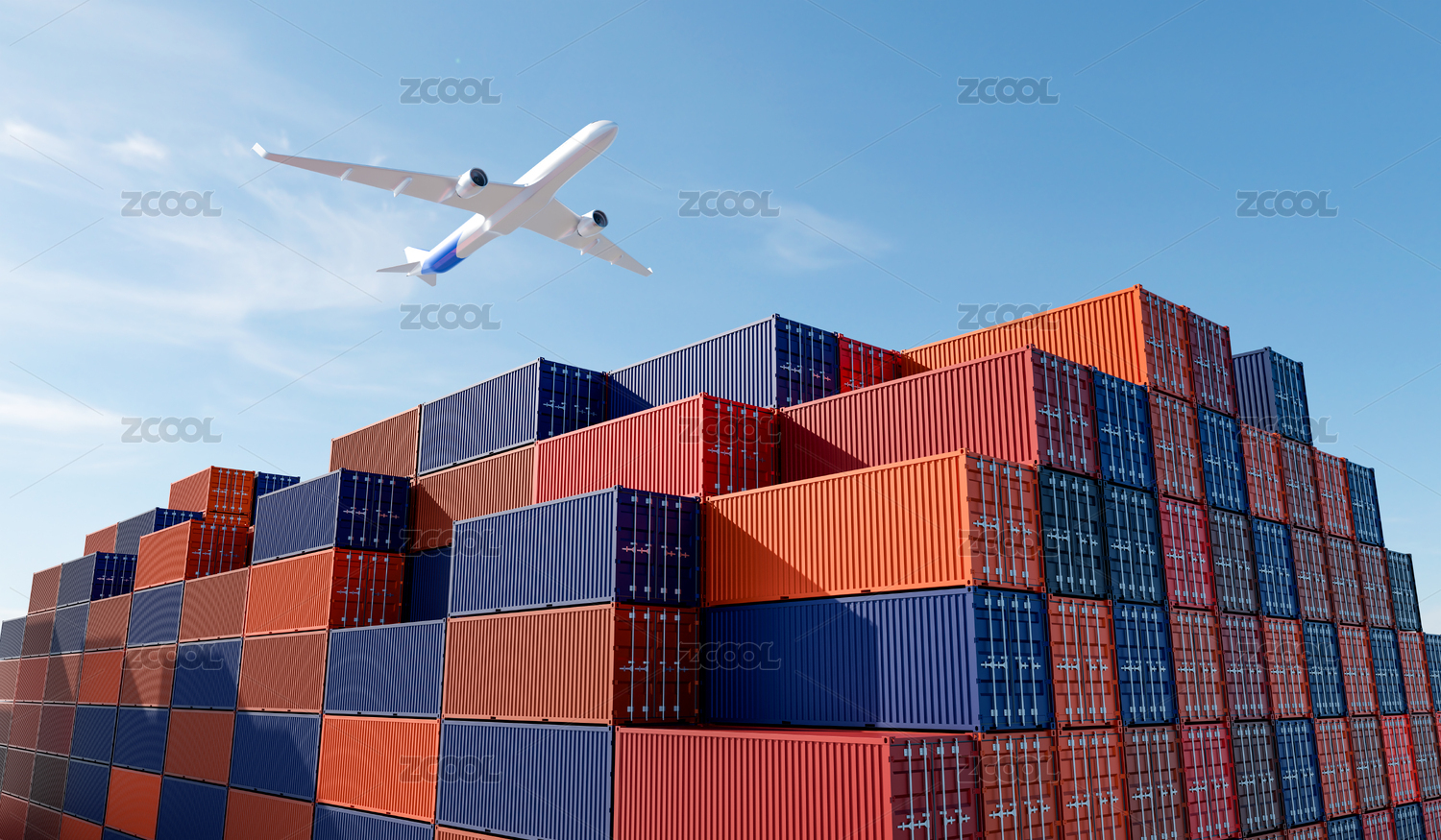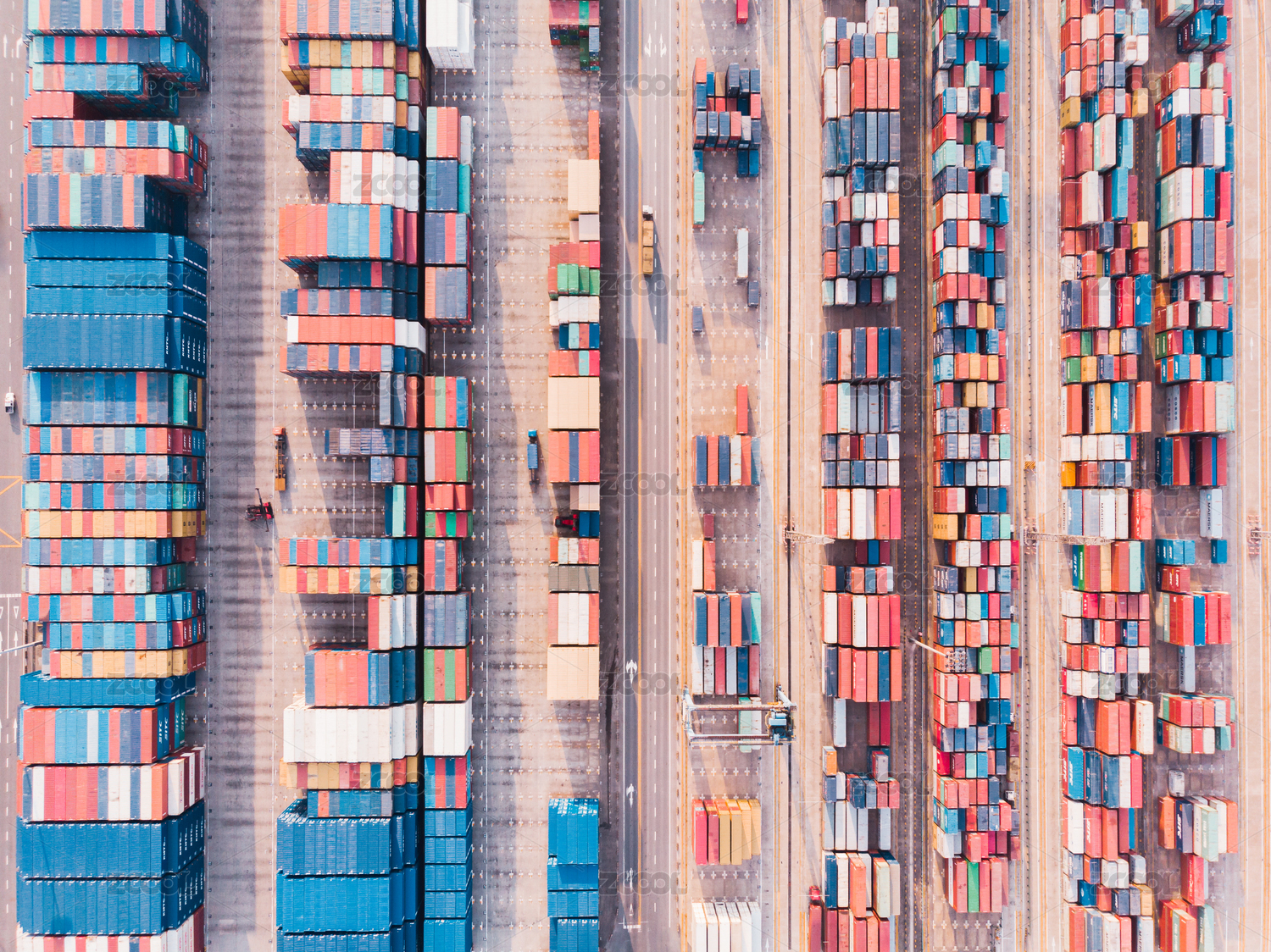 大型集装箱港口堆叠的集装箱工业场景