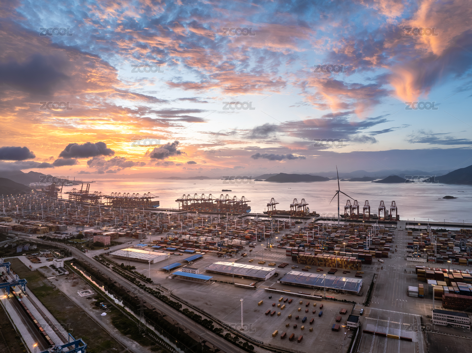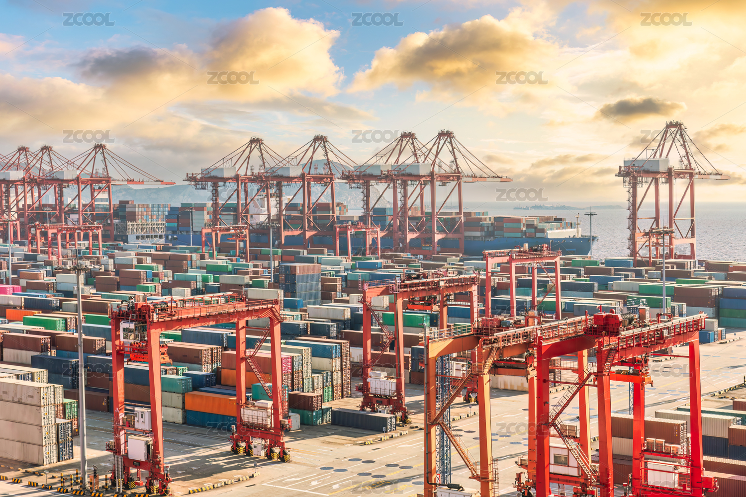 集装箱码头黄昏图