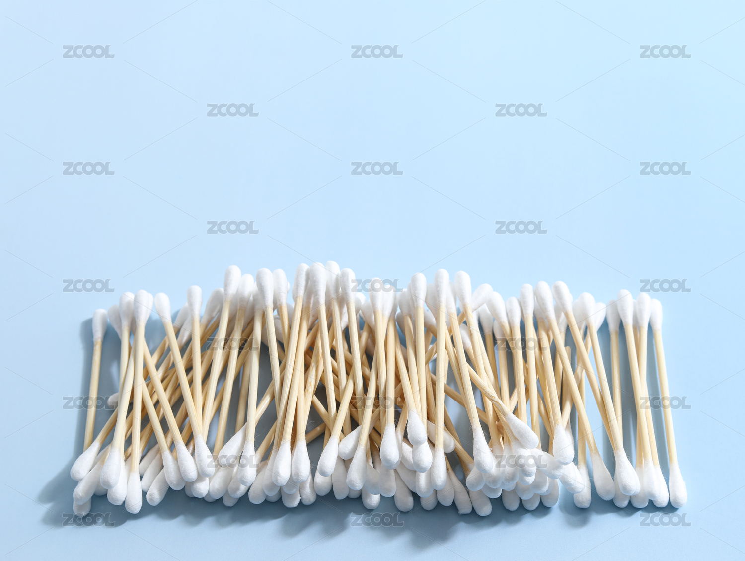 蓝色背景上的大量的清洁工具医疗用品棉签