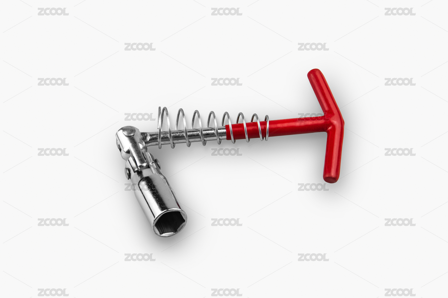白色背景中五金工具金属扭力扳手和套筒