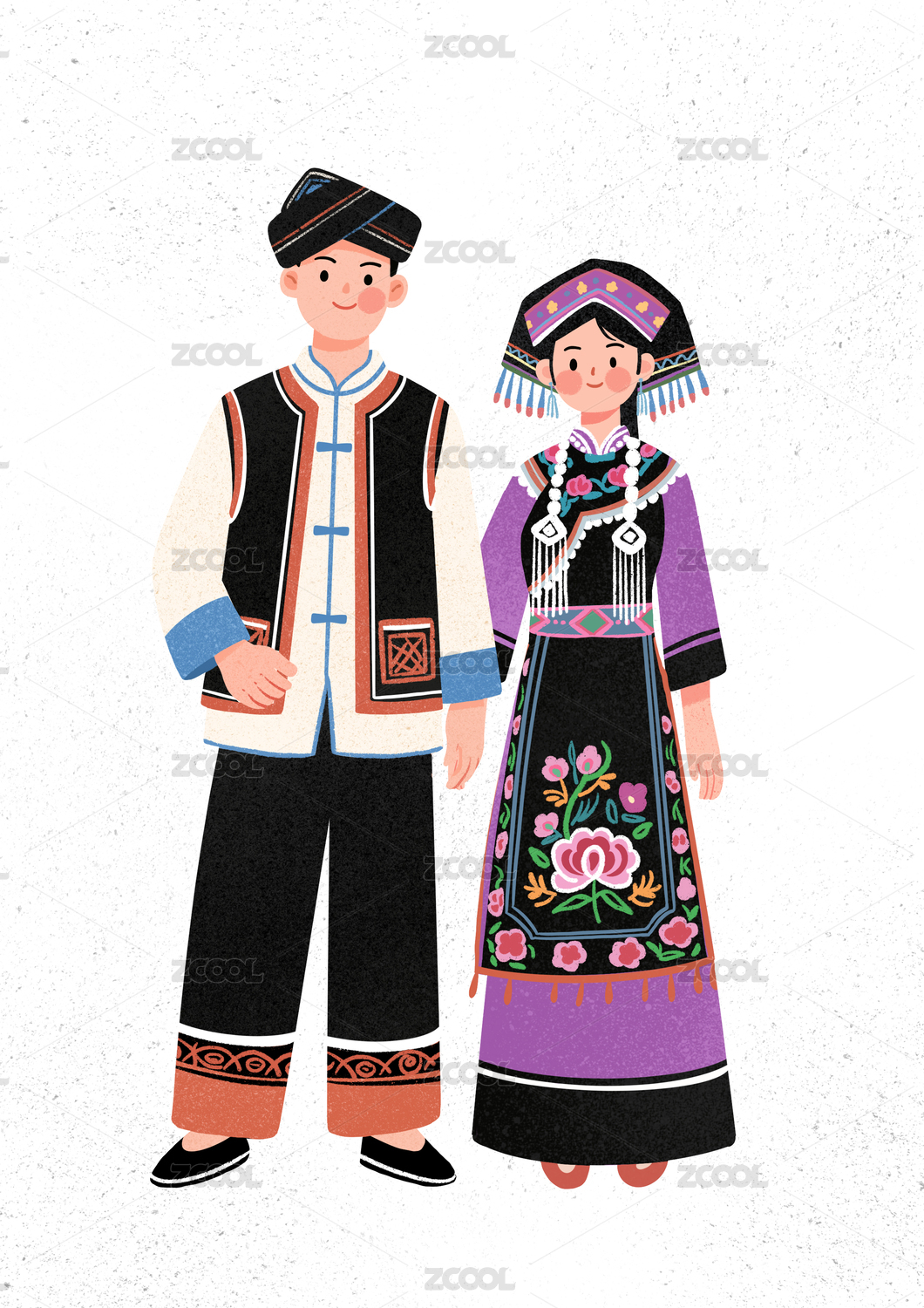 壮族男女传统服饰插画