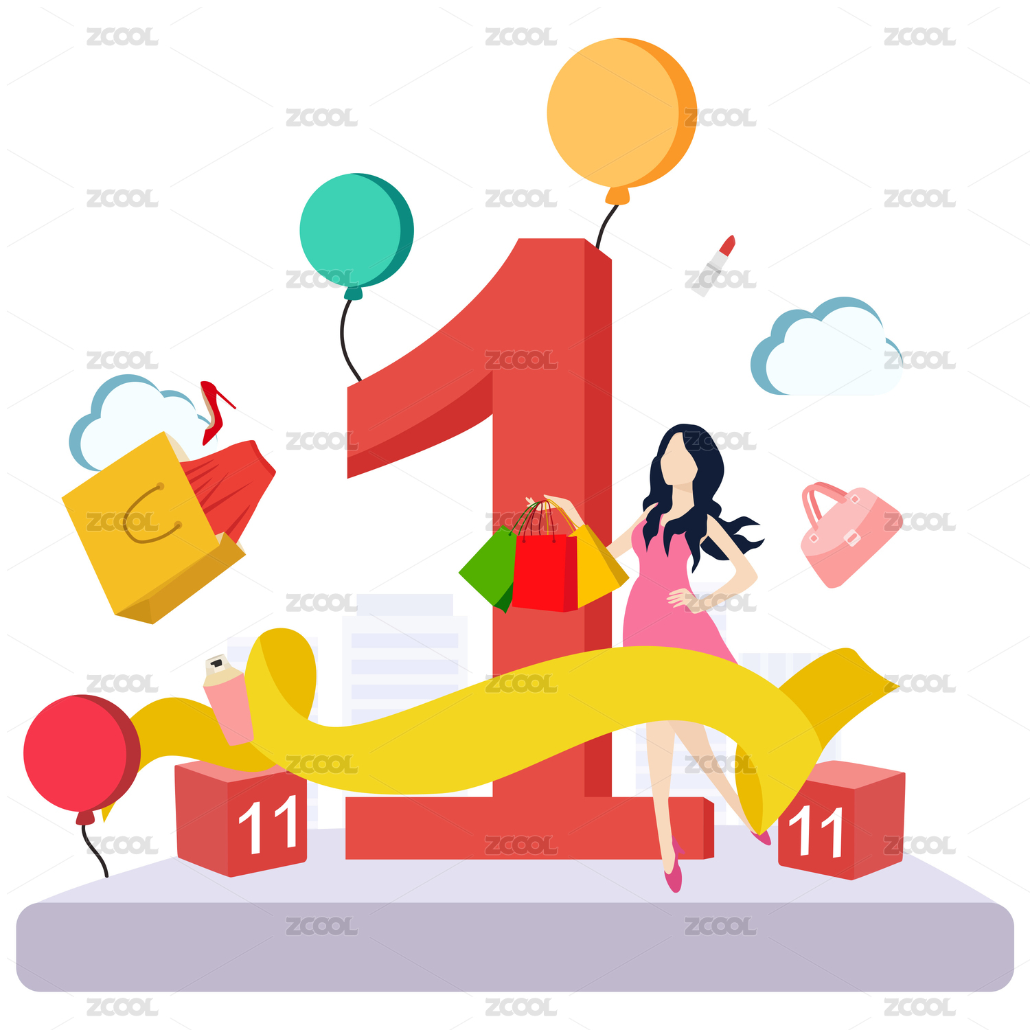 双十一女装化妆品矢量促销