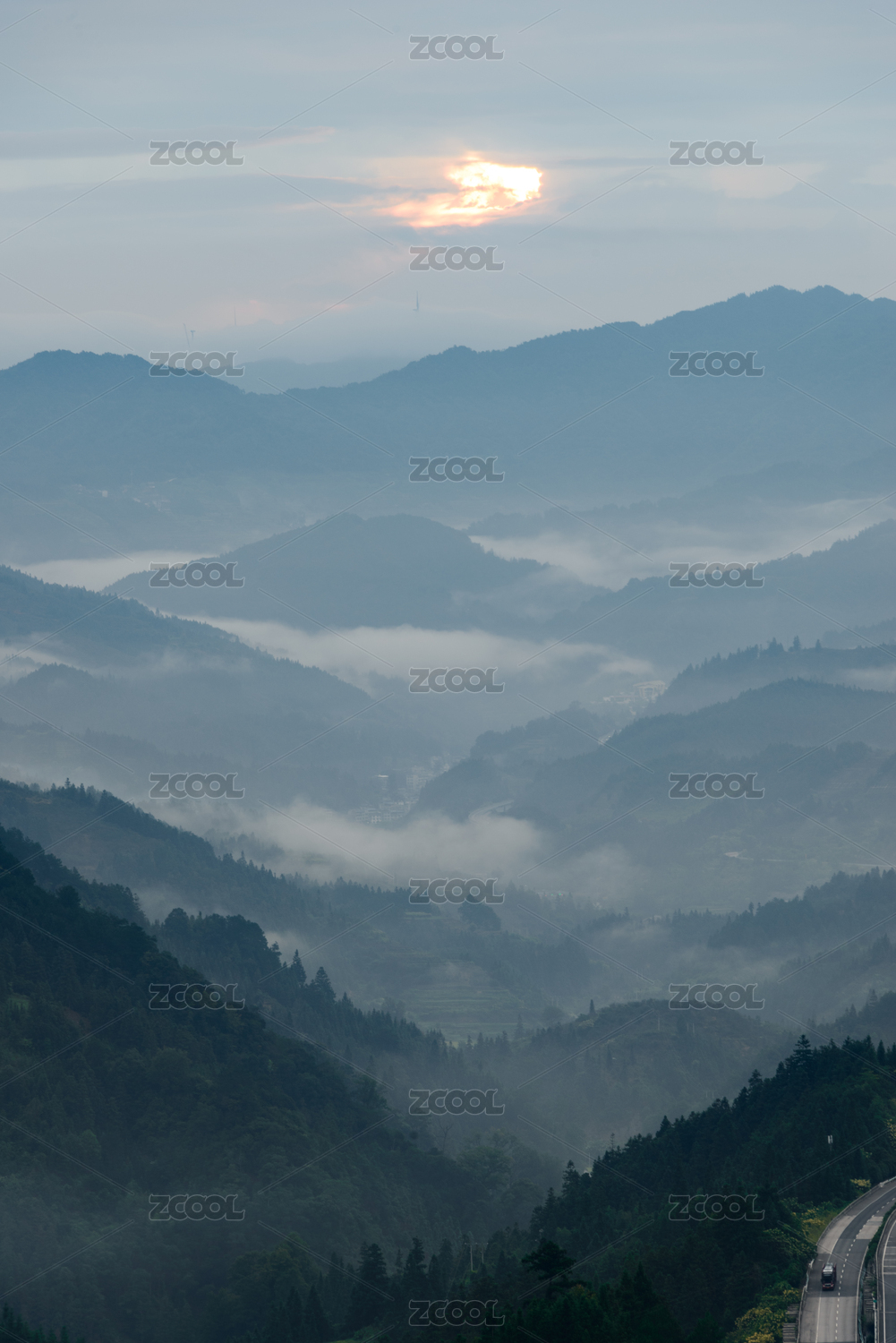 贵州省黔东南黎平县堂安梯田日出水墨云雾