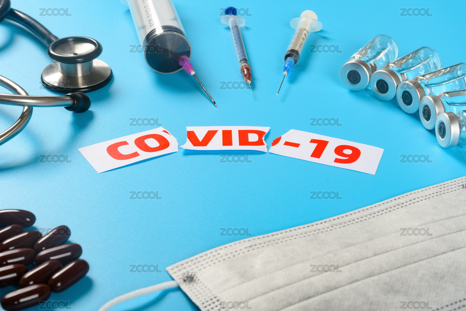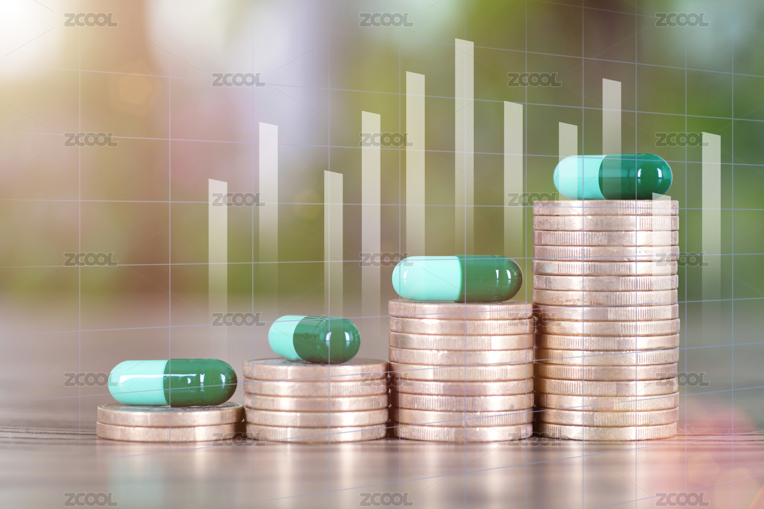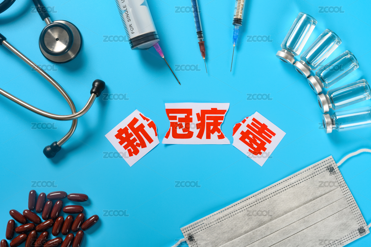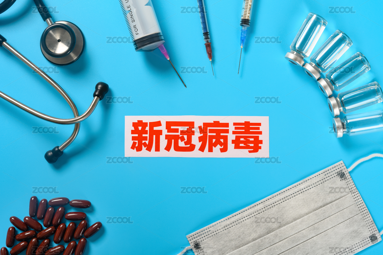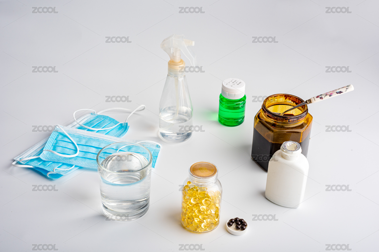 绿色背景医疗概念药品感冒药