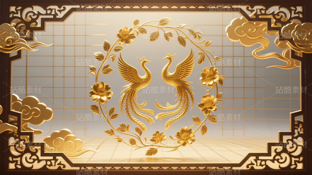 金凤凰豪华家装金店装饰画金首饰店铺海报花开富贵壁画