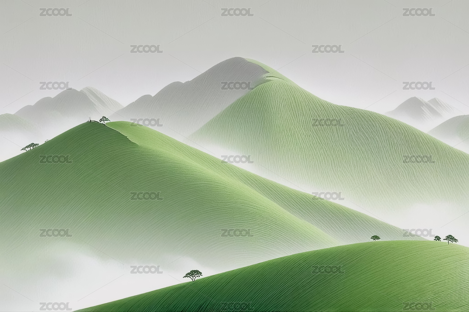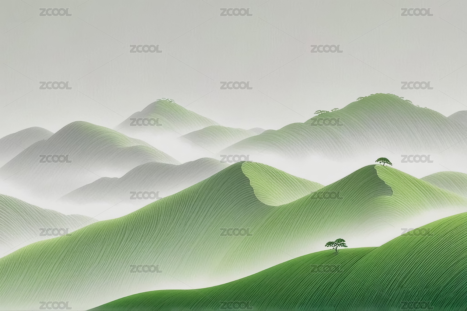春天简约工笔画山峦背景图
