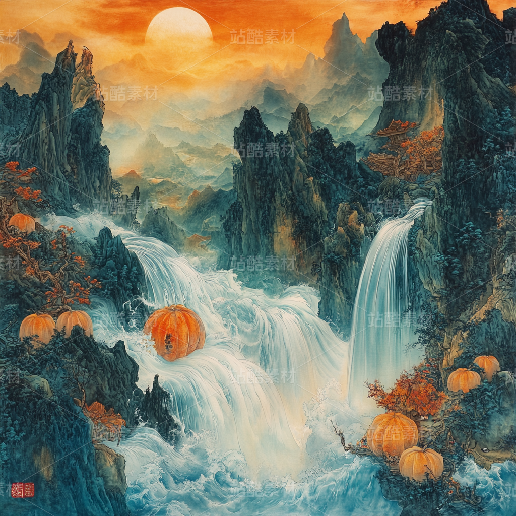 山水装饰画水墨花鸟装饰画中国画水彩画