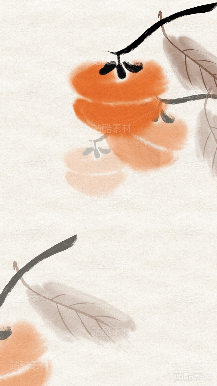 新中式红叶花鸟画水墨背景水墨花鸟装饰画