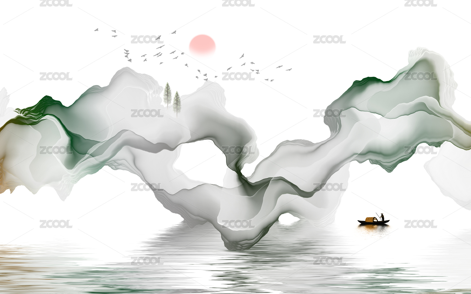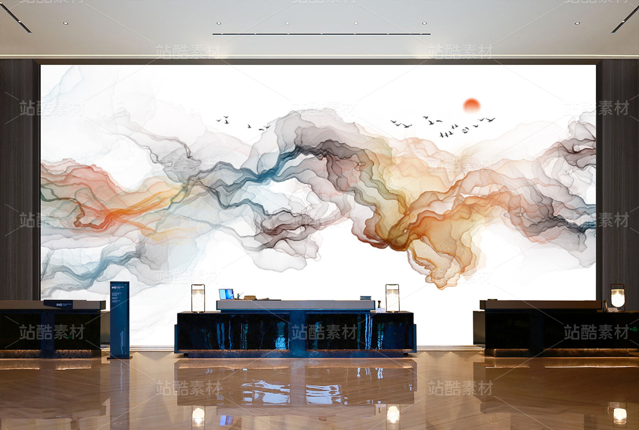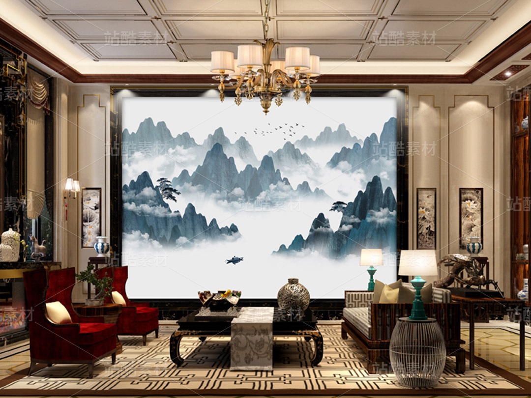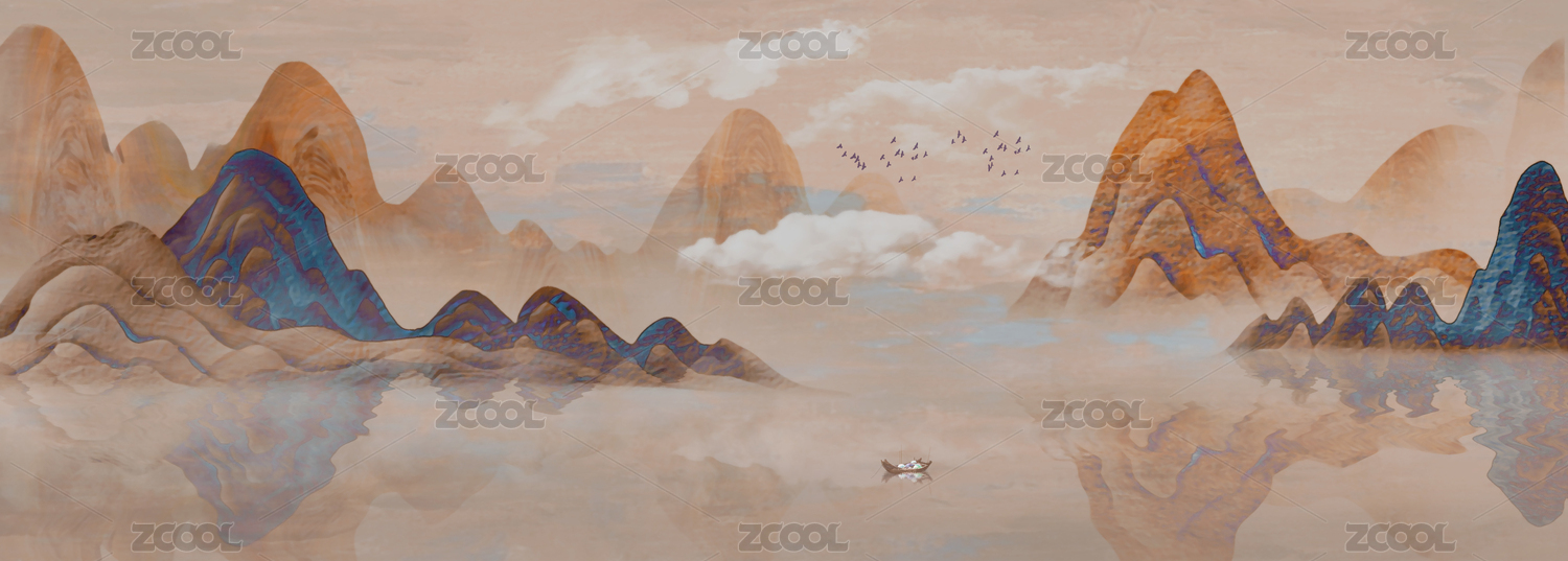 水墨山水装饰画背景