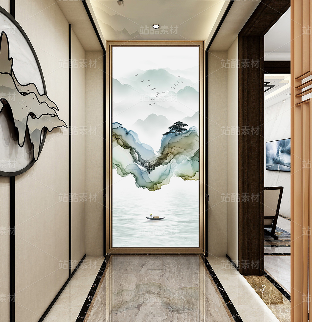 新中式水墨山水装饰画背景