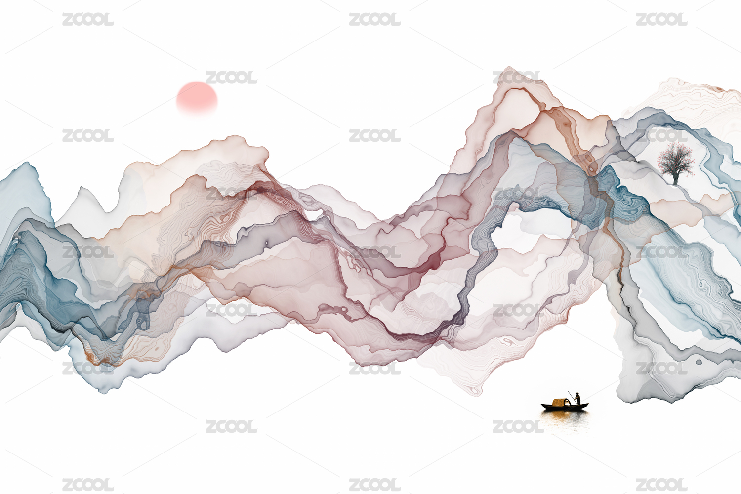 抽象的彩色线条,水墨山水装饰画