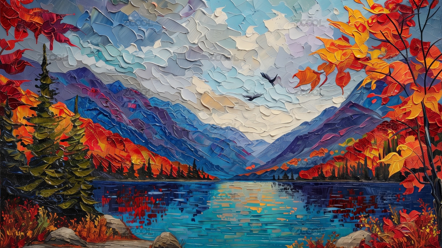 鸬鹚夕阳油画鸿运当头风景画油画动物与风景油画