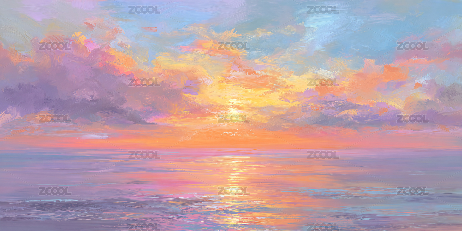 云彩夕阳天空油画