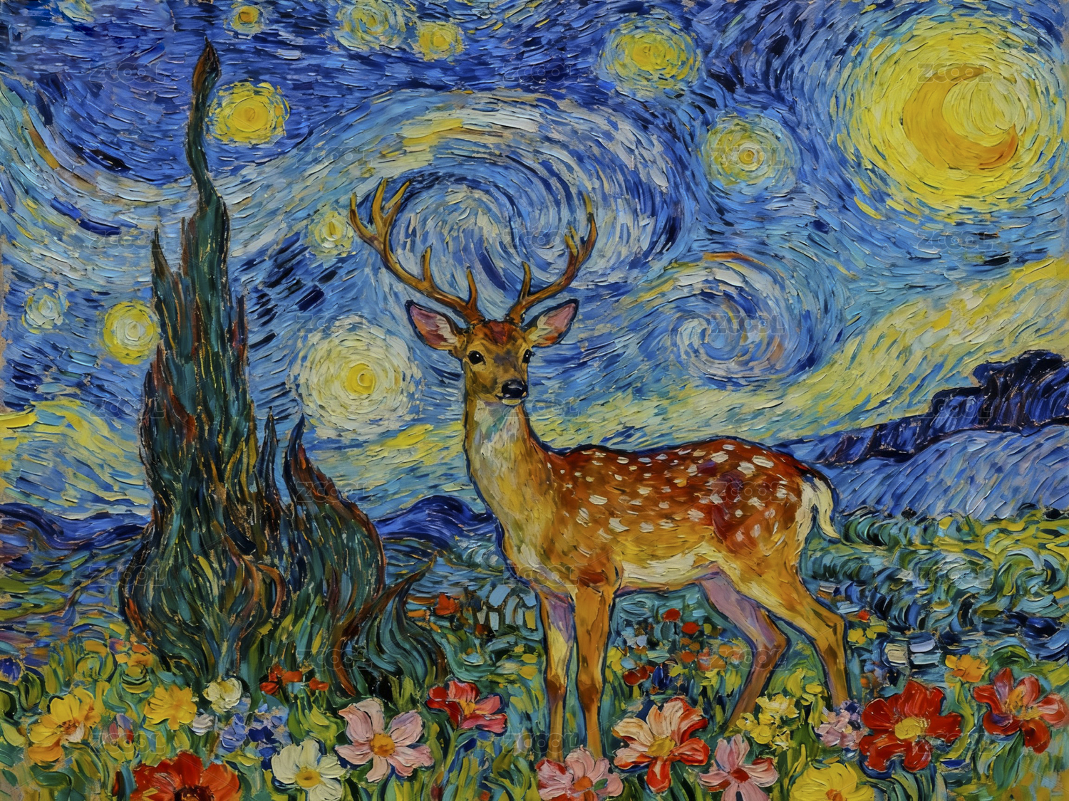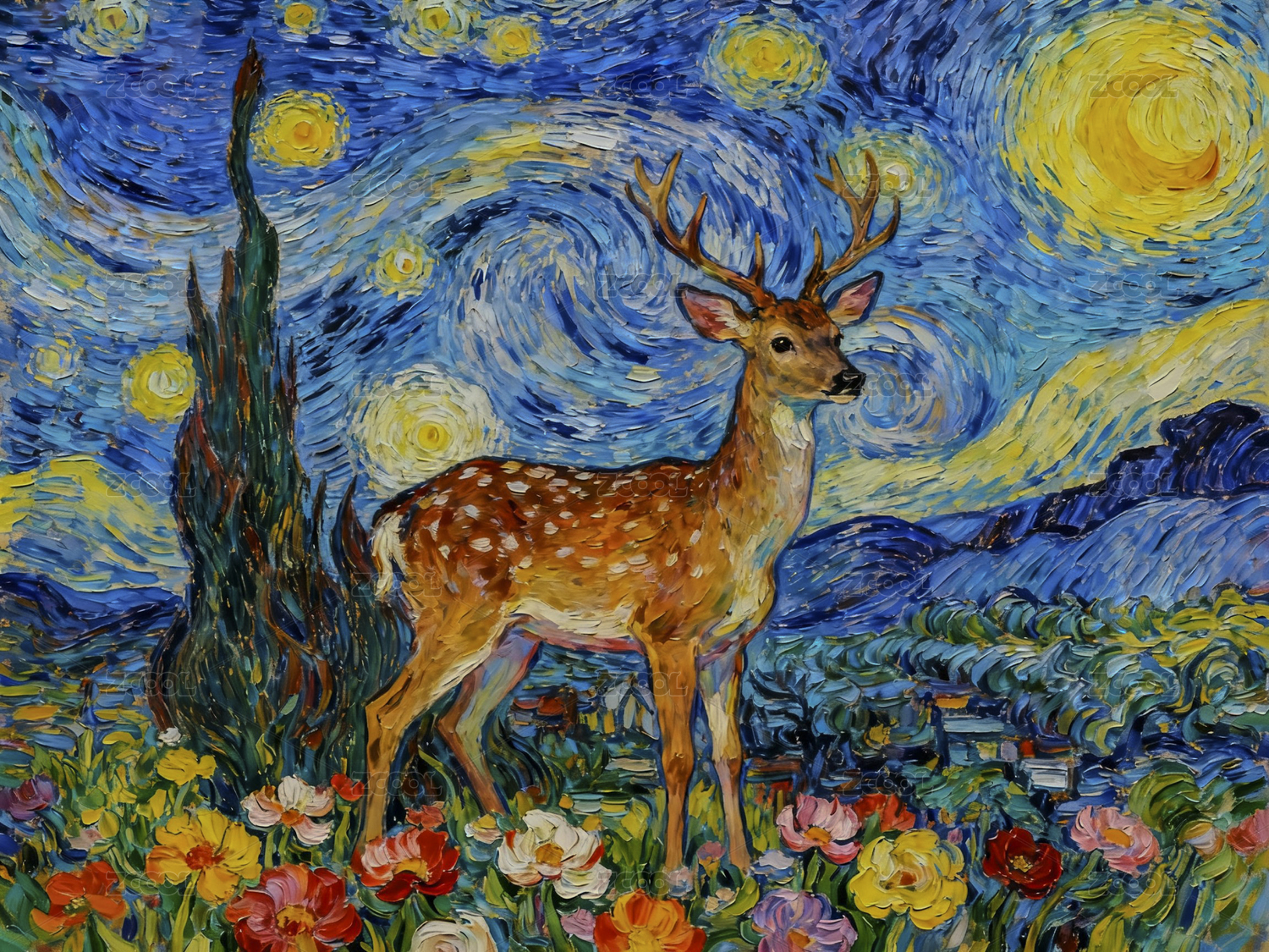 梵高星空下的鹿