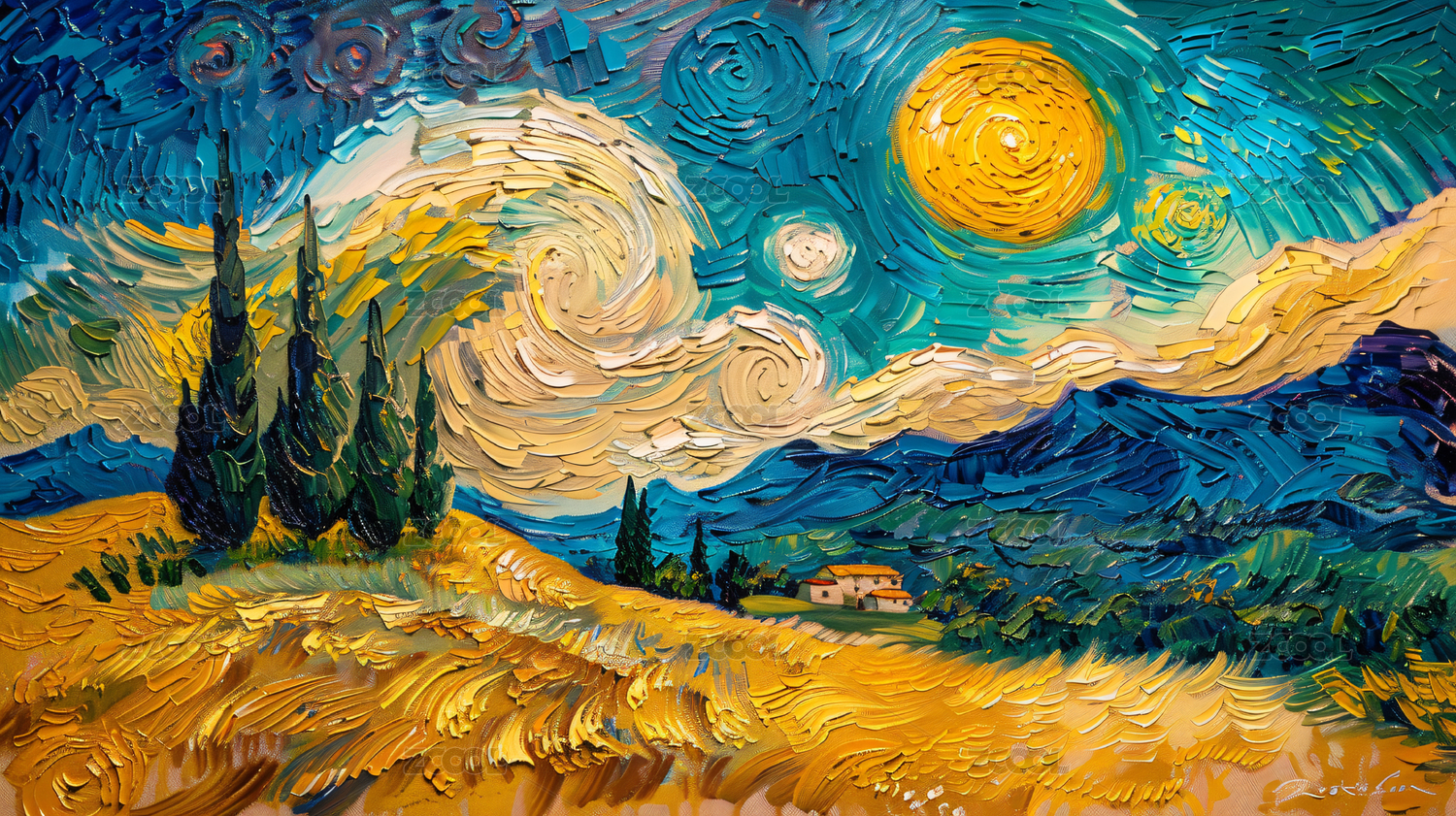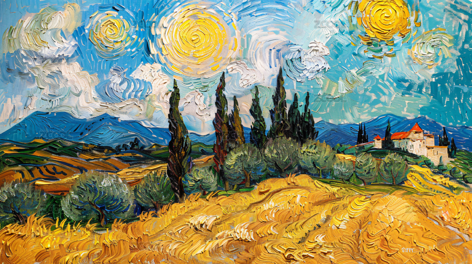 梵高风格星夜下的橄榄树田园画作