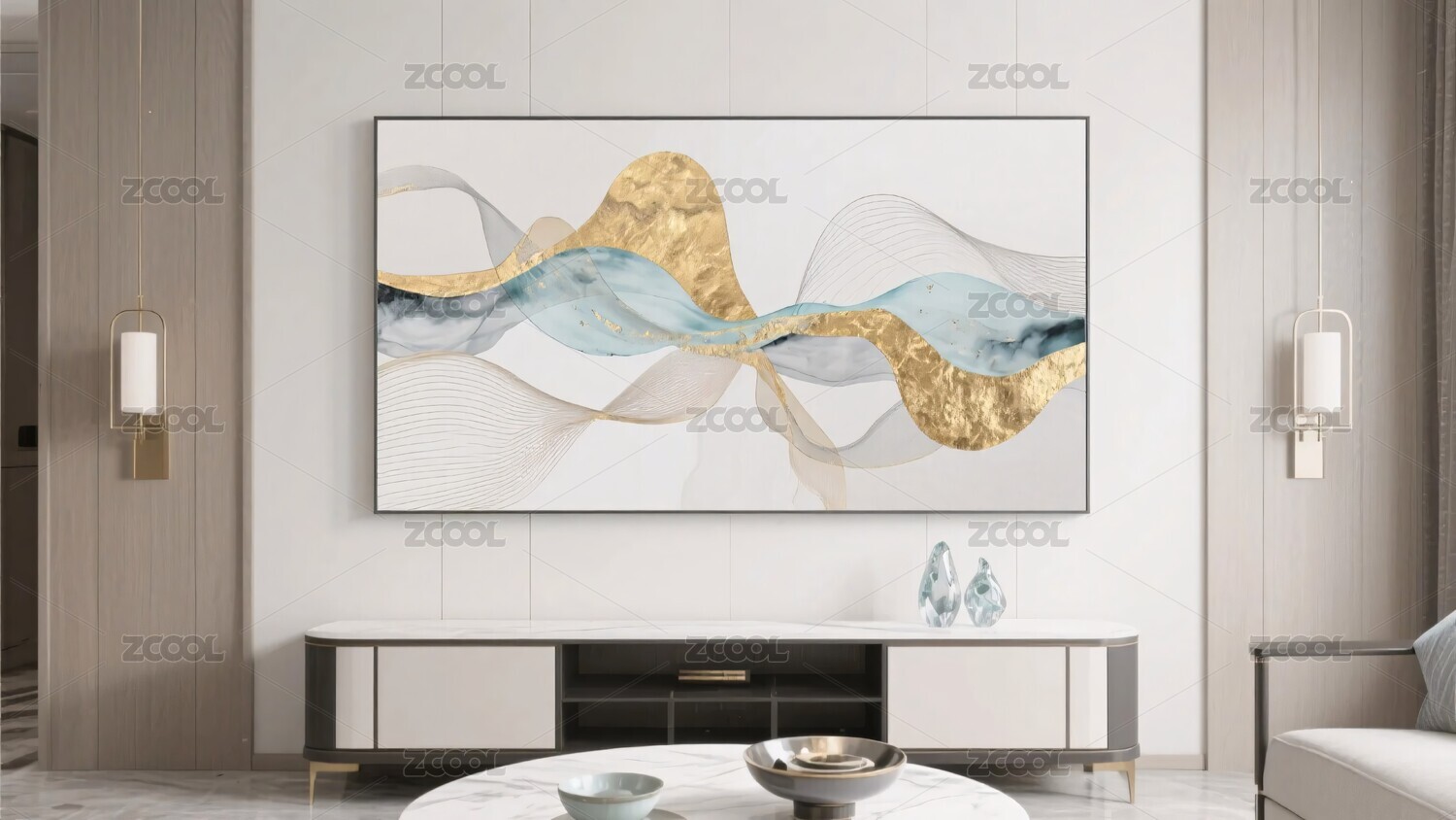 客厅金色艺术装饰画