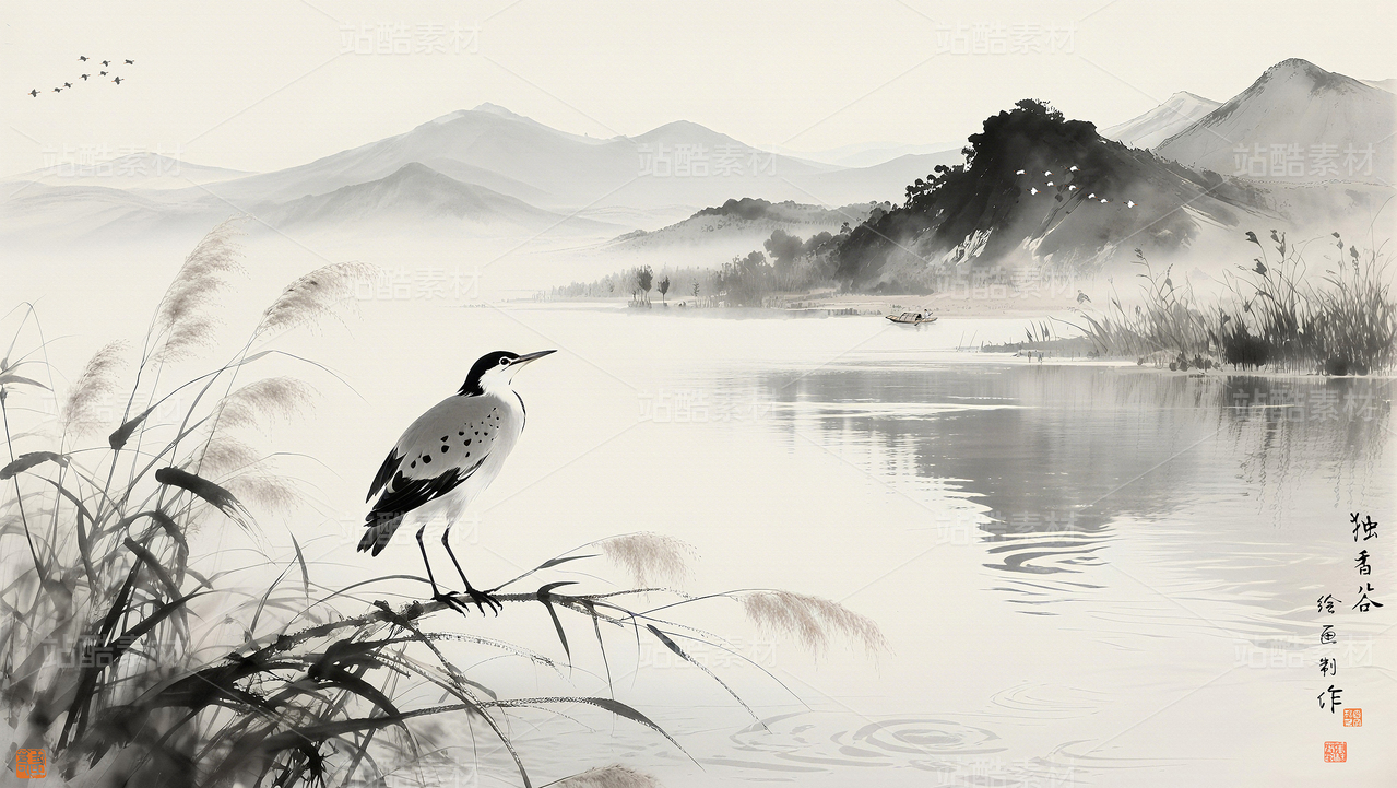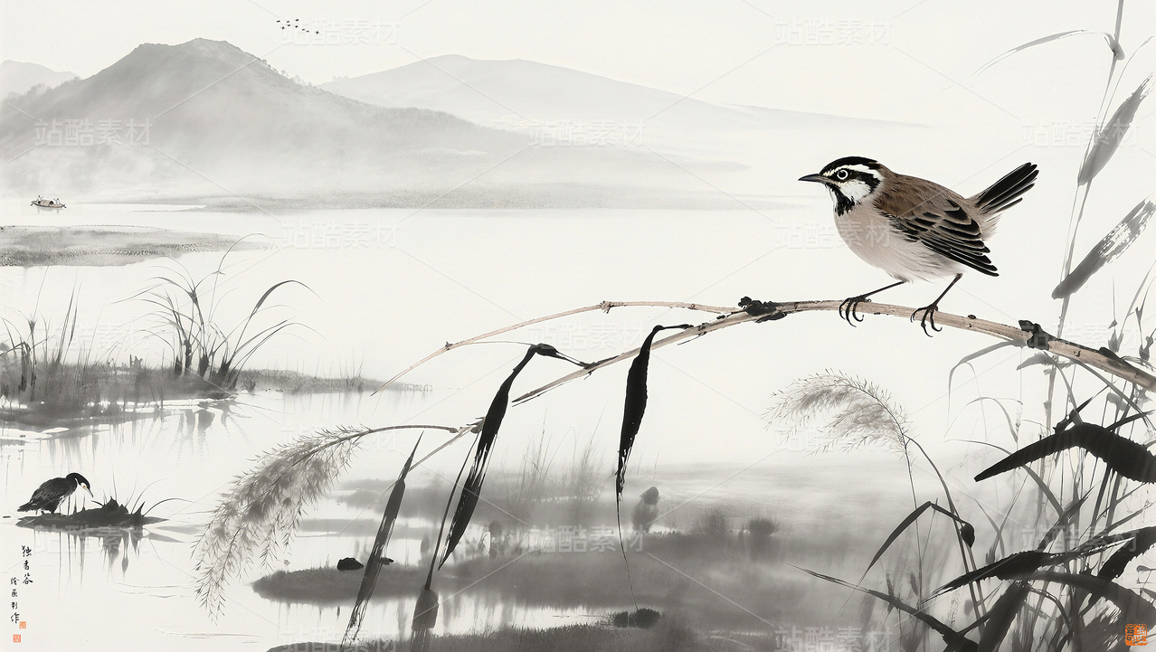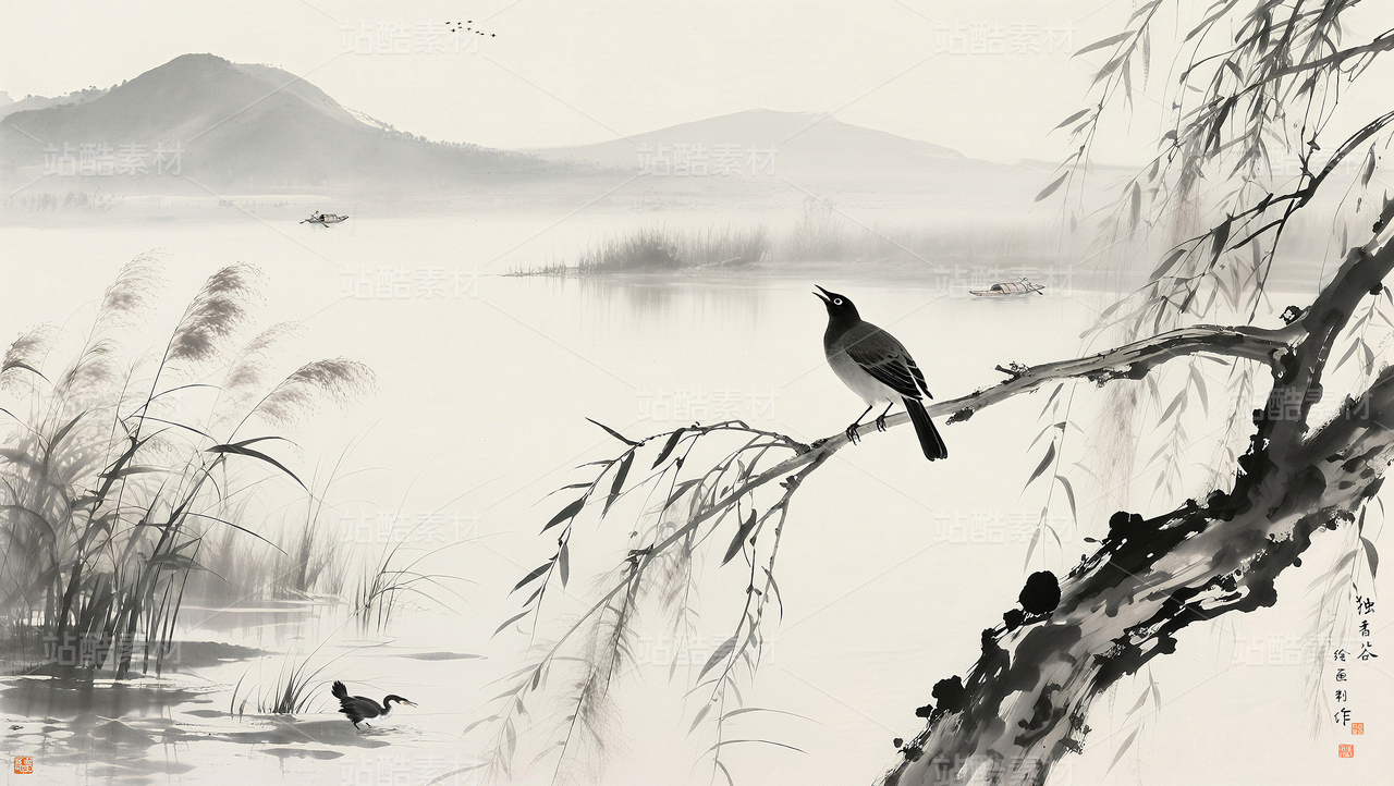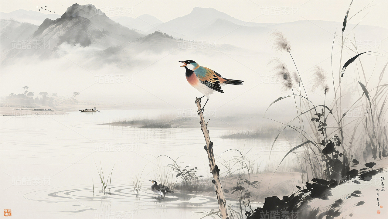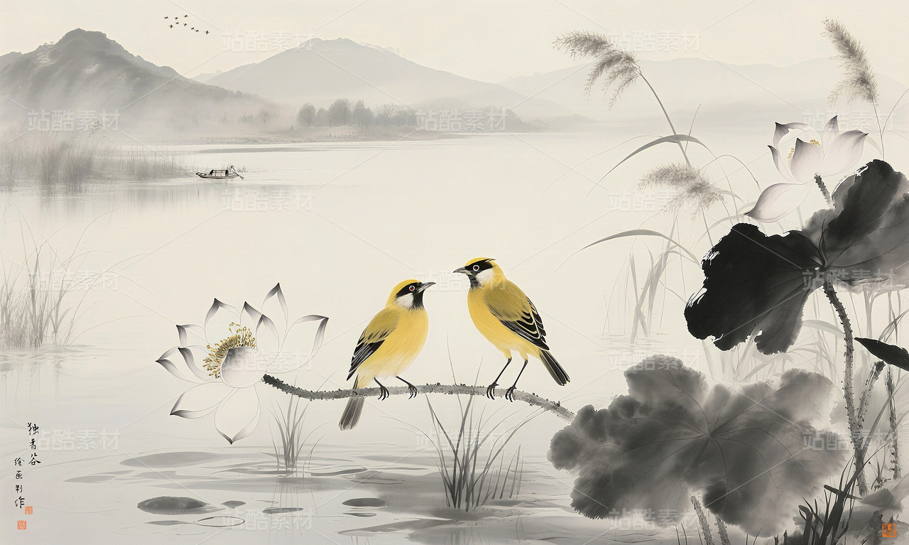 水墨花鸟水墨山水花鸟画新中式国画山水花鸟写意花鸟