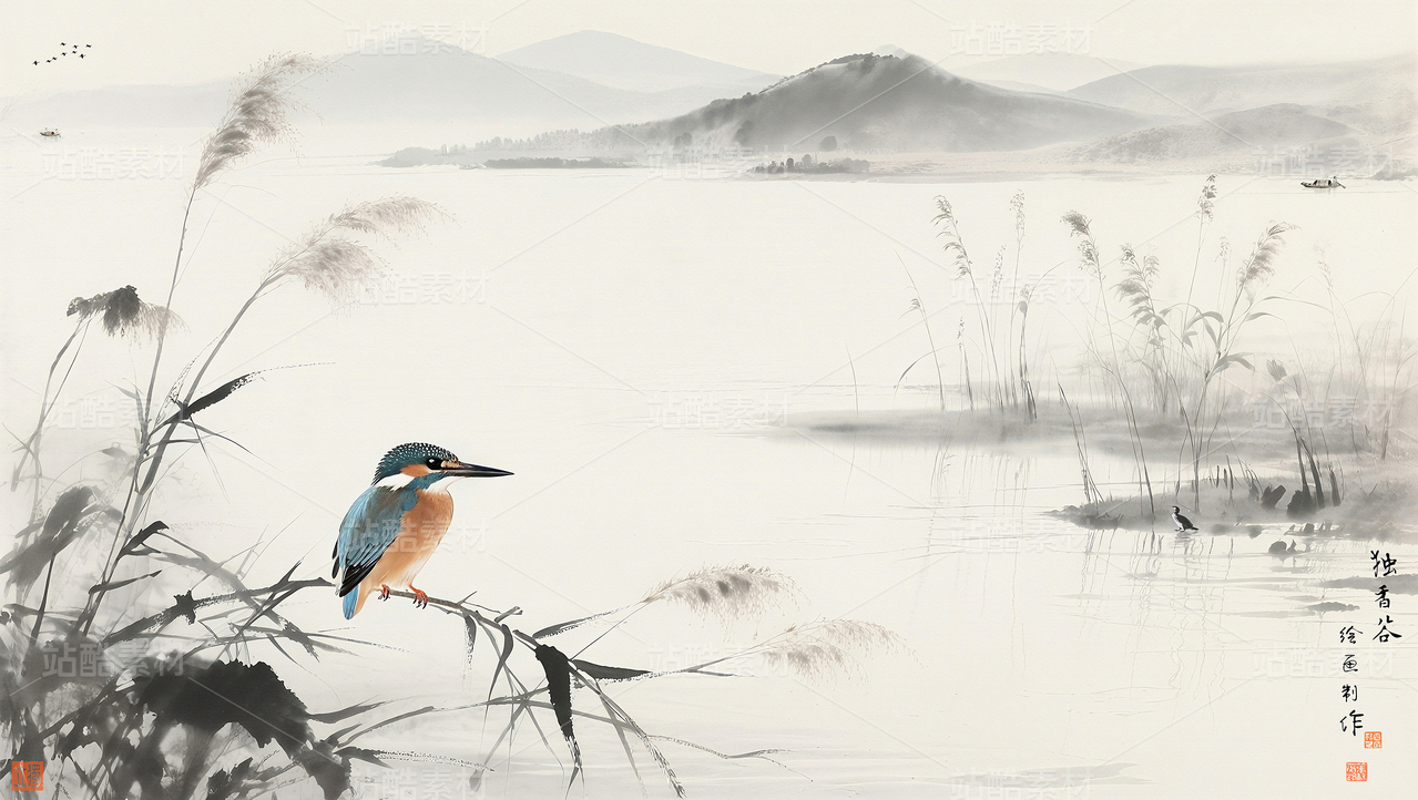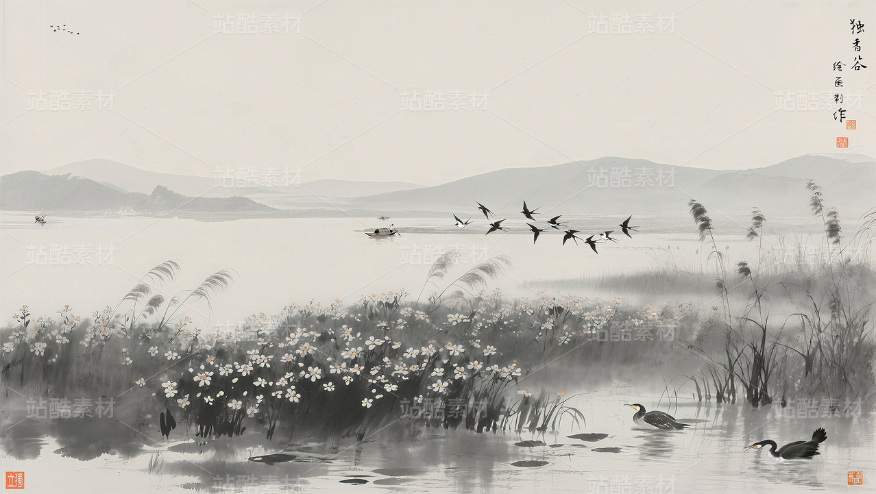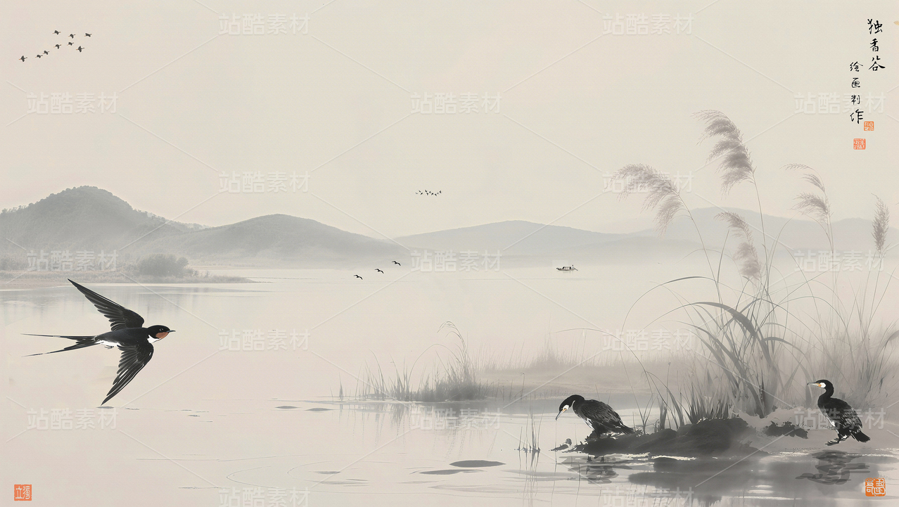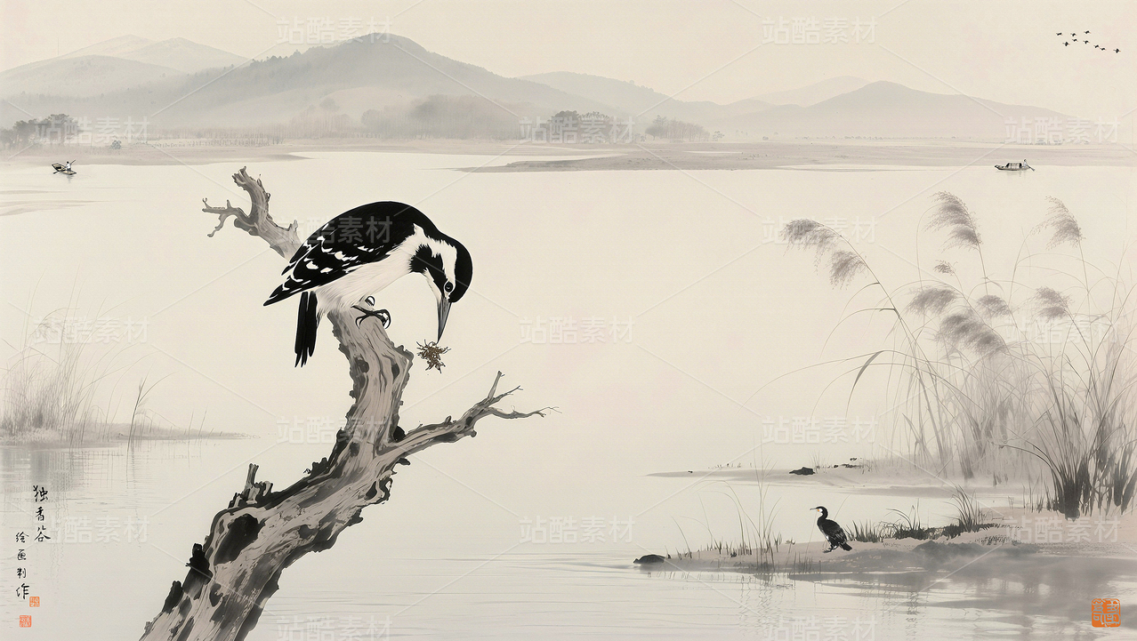 水墨花鸟水墨山水花鸟画新中式国画山水花鸟写意花鸟
