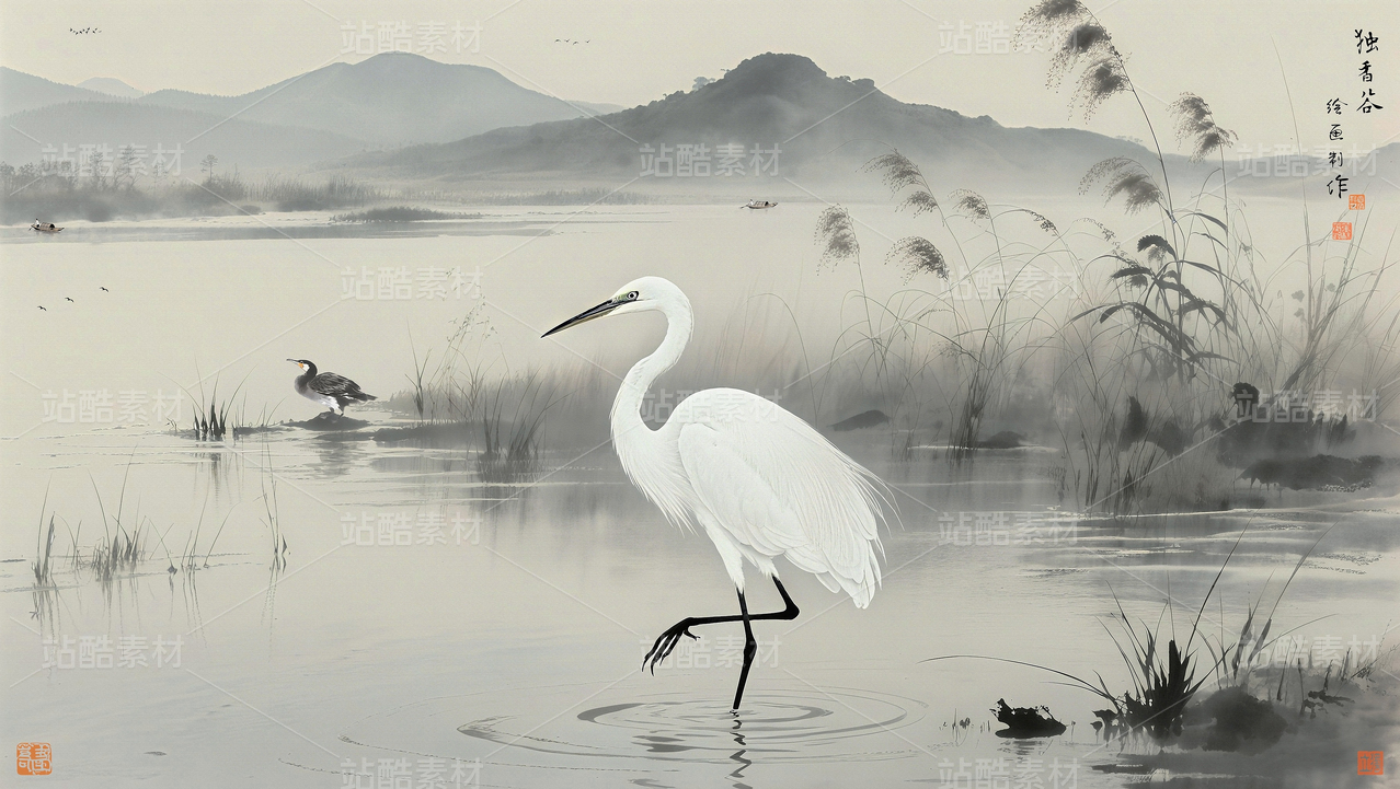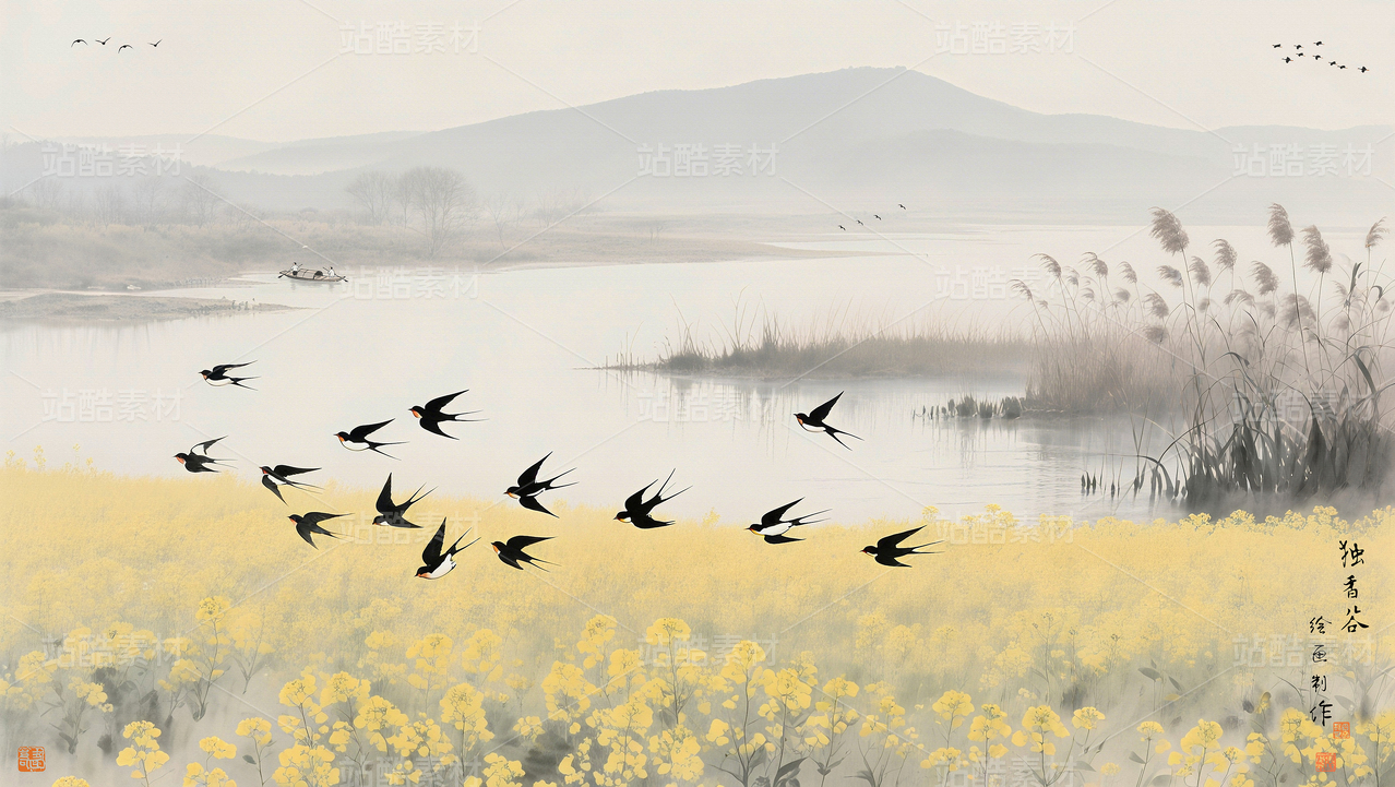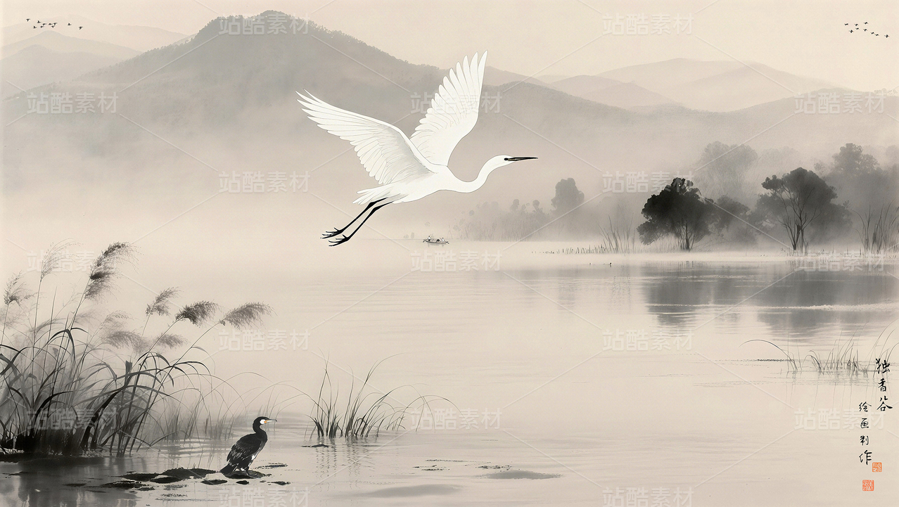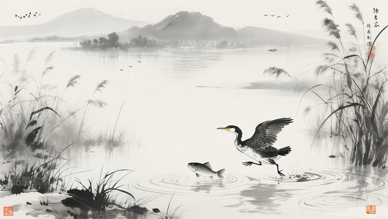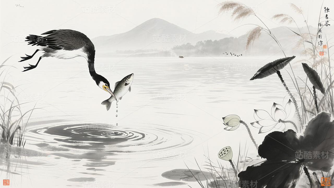 水墨花鸟水墨山水花鸟画新中式国画山水花鸟写意花鸟