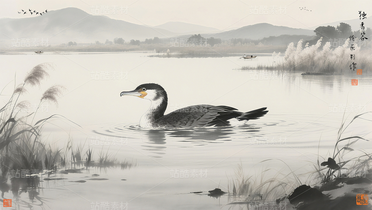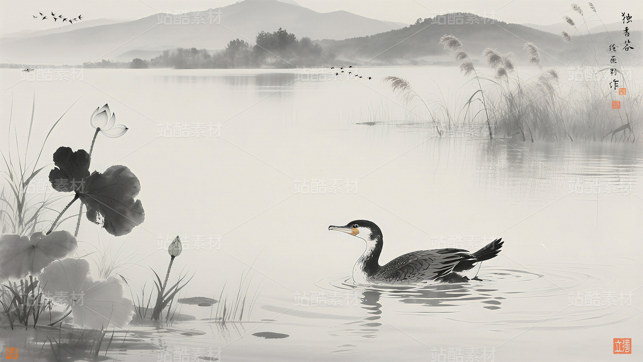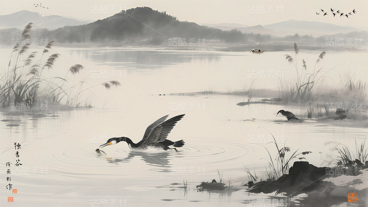水墨山水花鸟画新中式水墨花鸟国画山水花鸟写意花鸟
