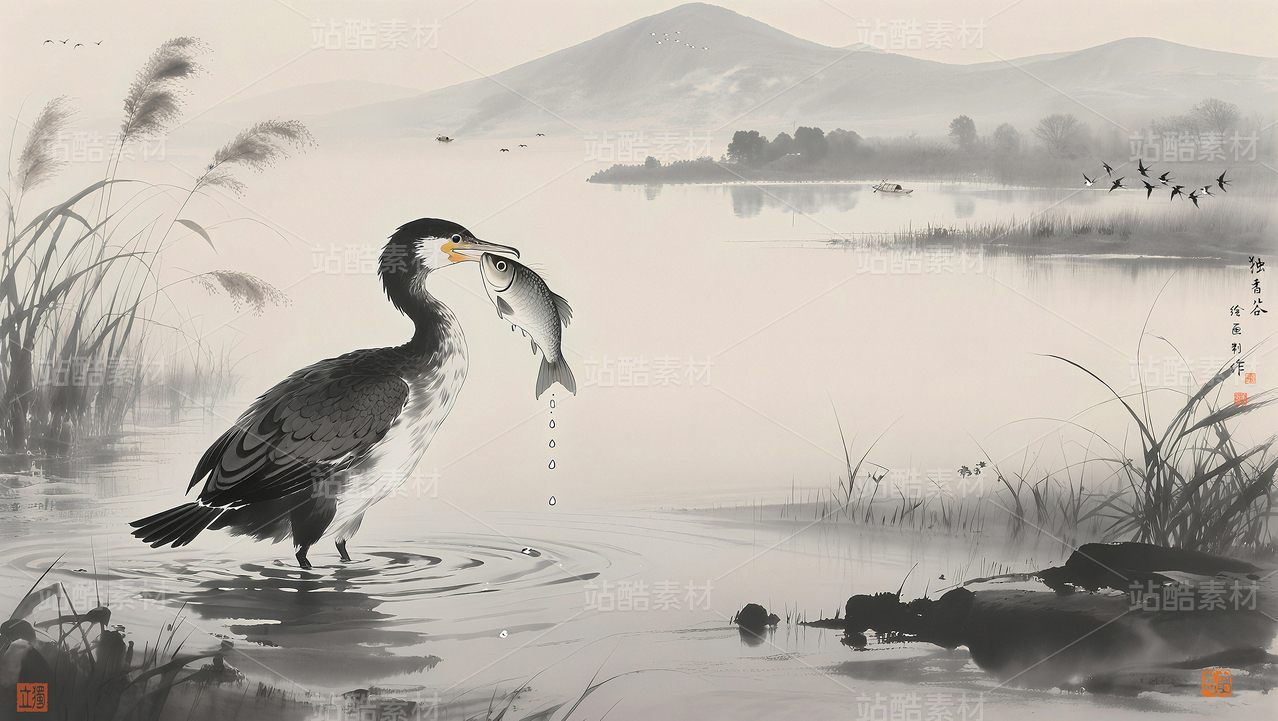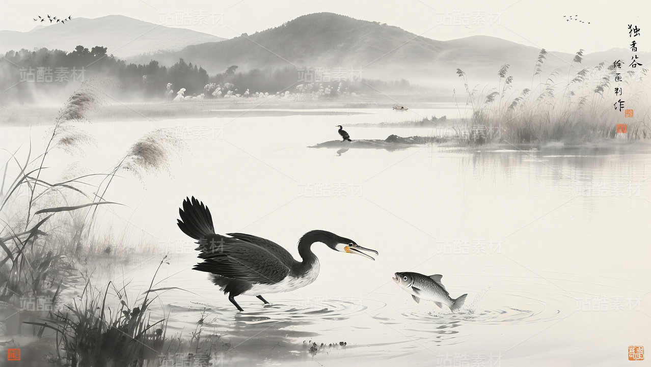 写意山水花鸟新中式水墨花鸟水墨山水花鸟画国画山水画