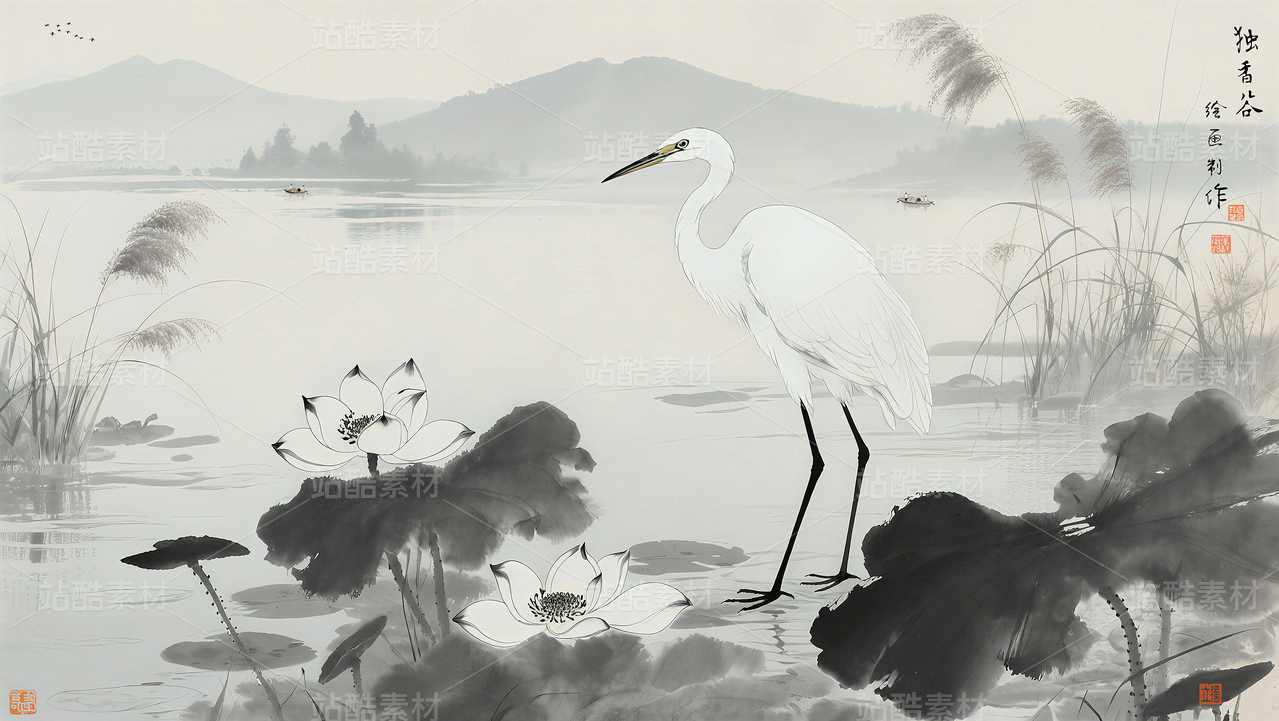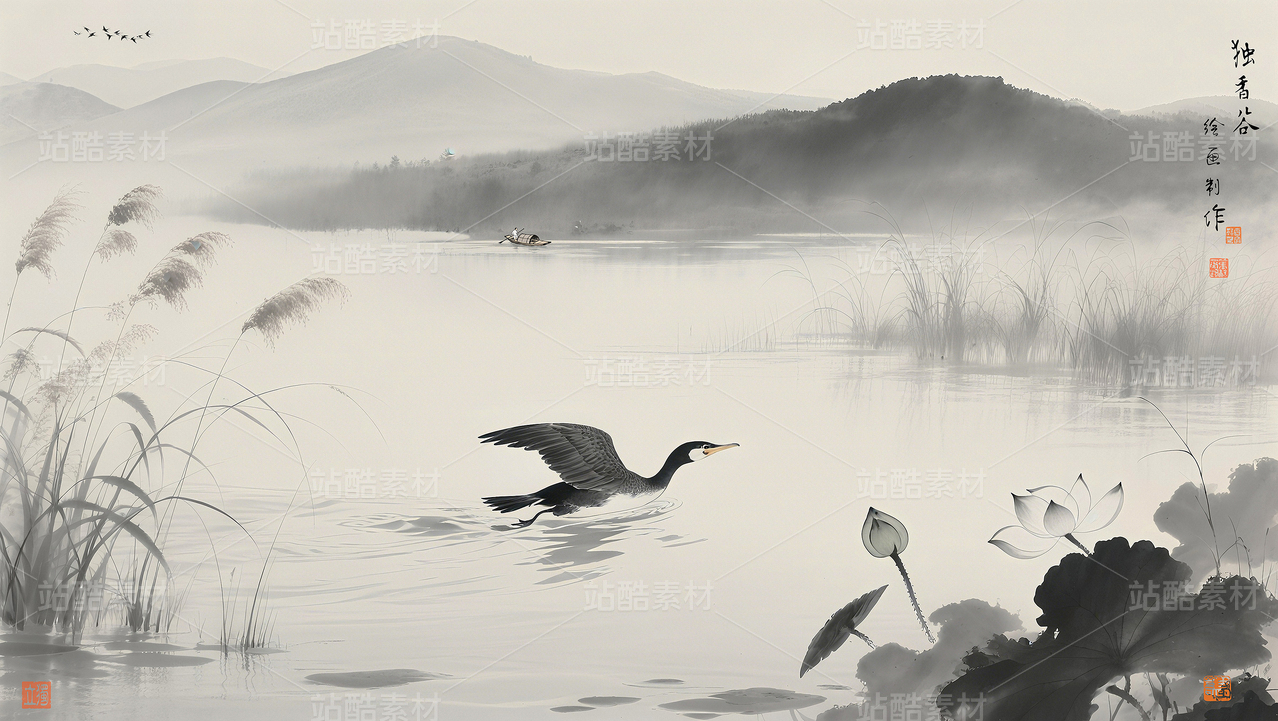 新中式花鸟水墨画禅境花鸟山水画写意山水画意境水墨