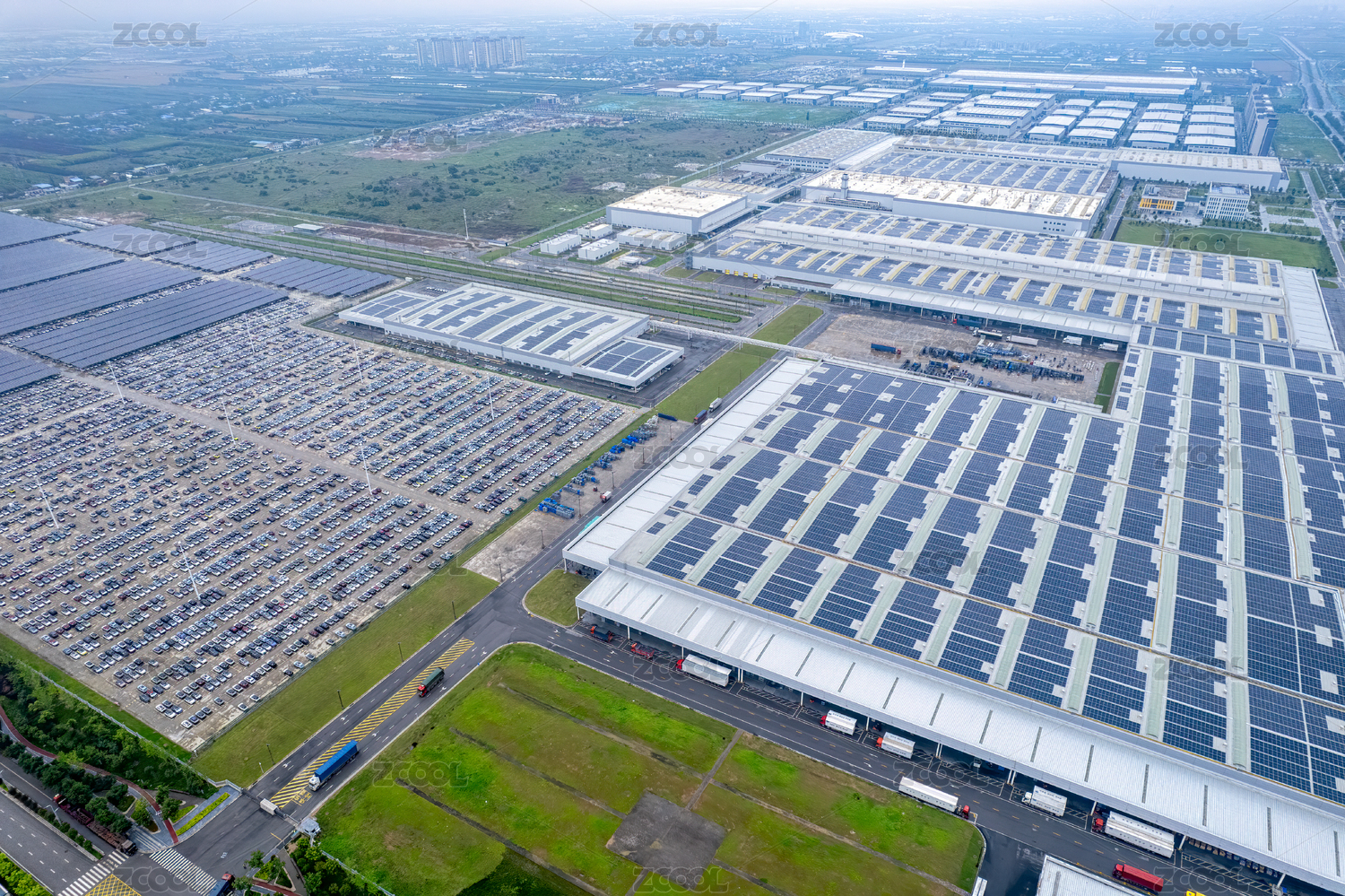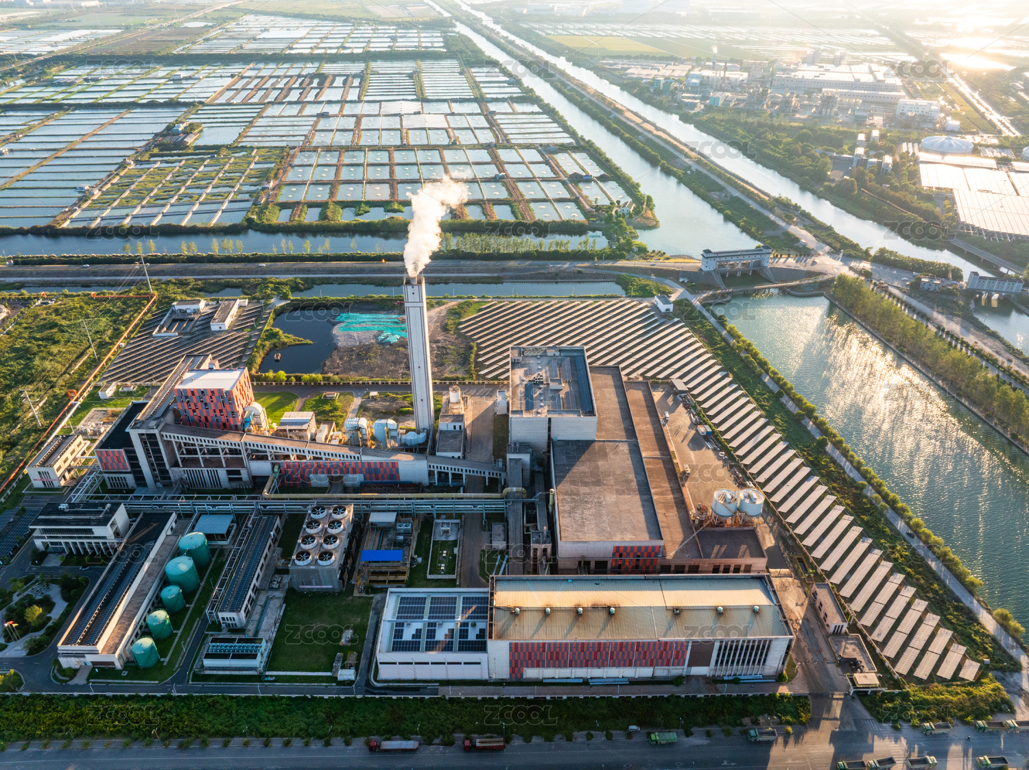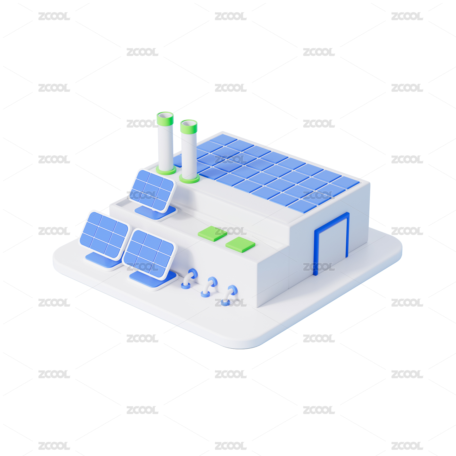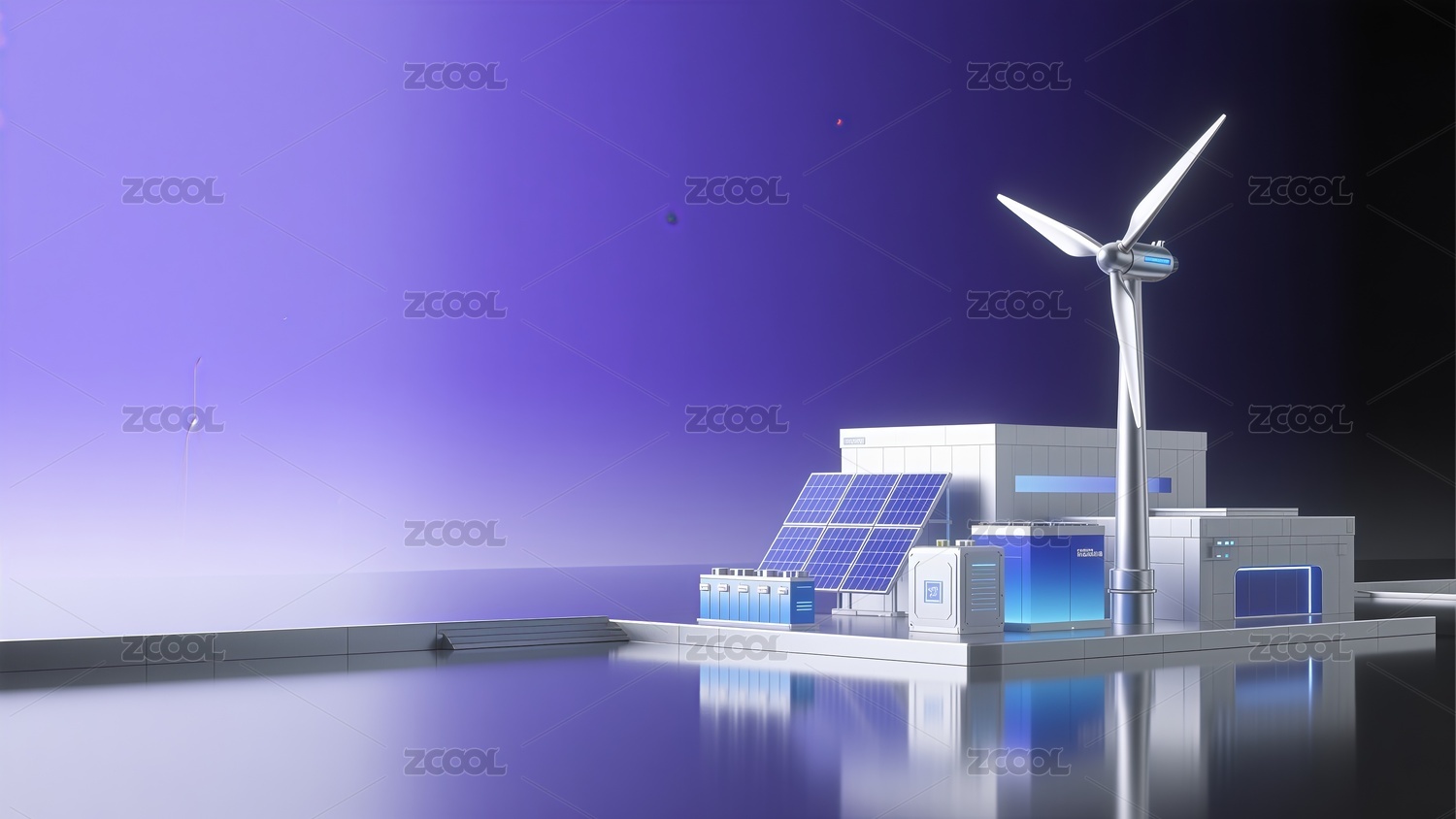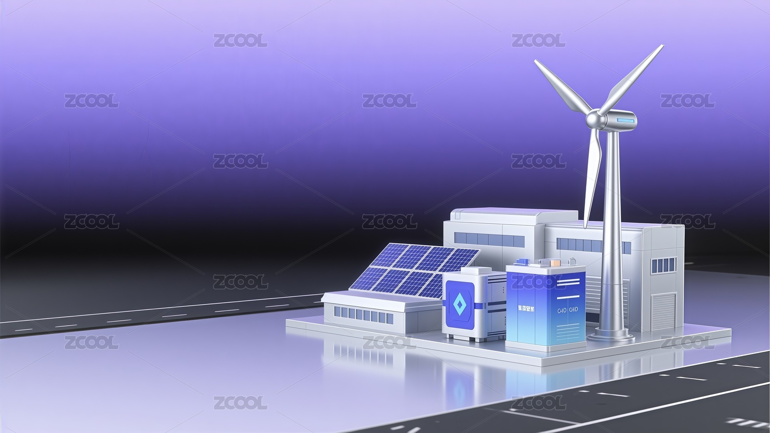 三维渲染的新能源风力发电和太阳能光伏工厂