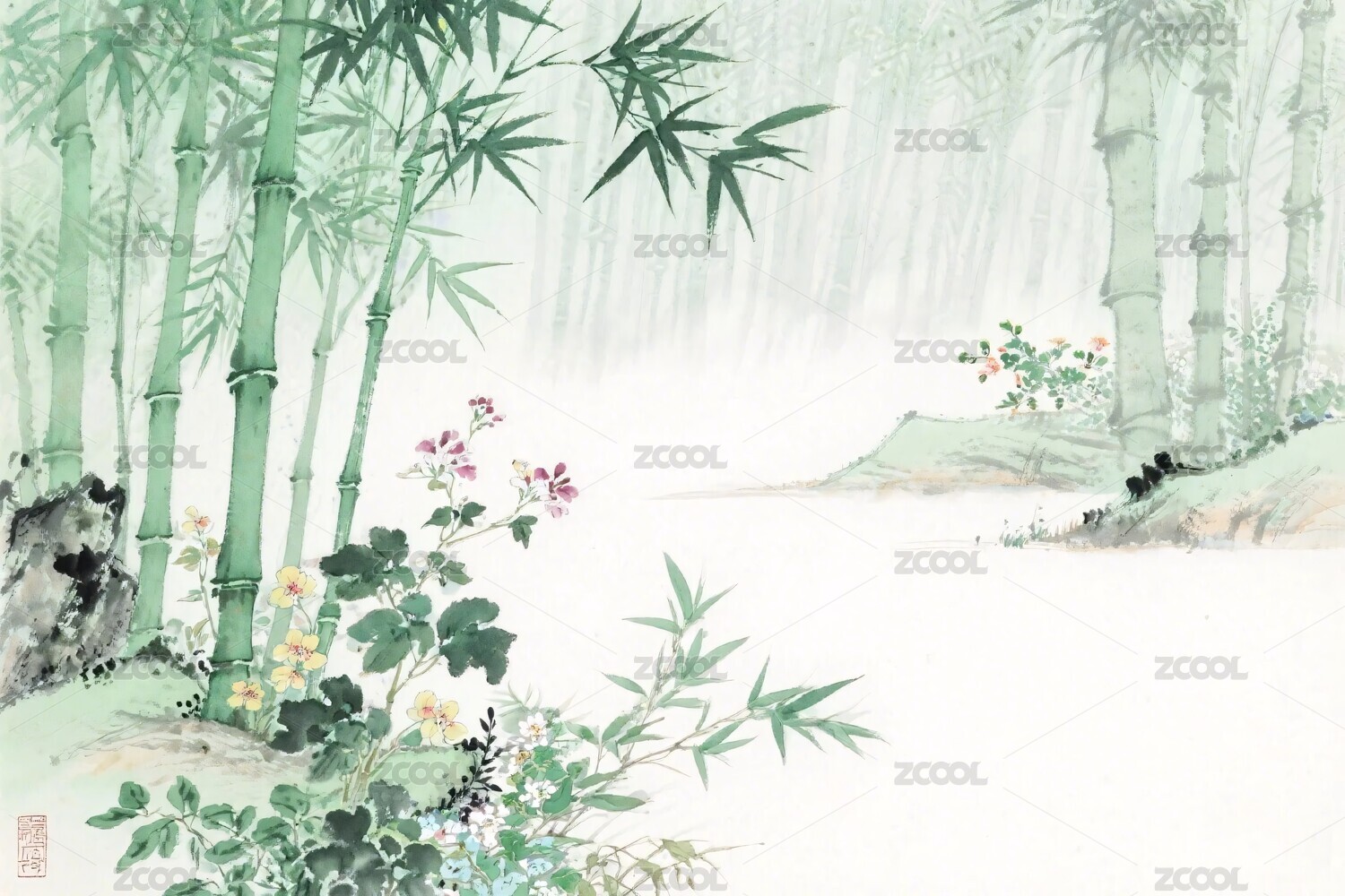 水墨竹林山水国画