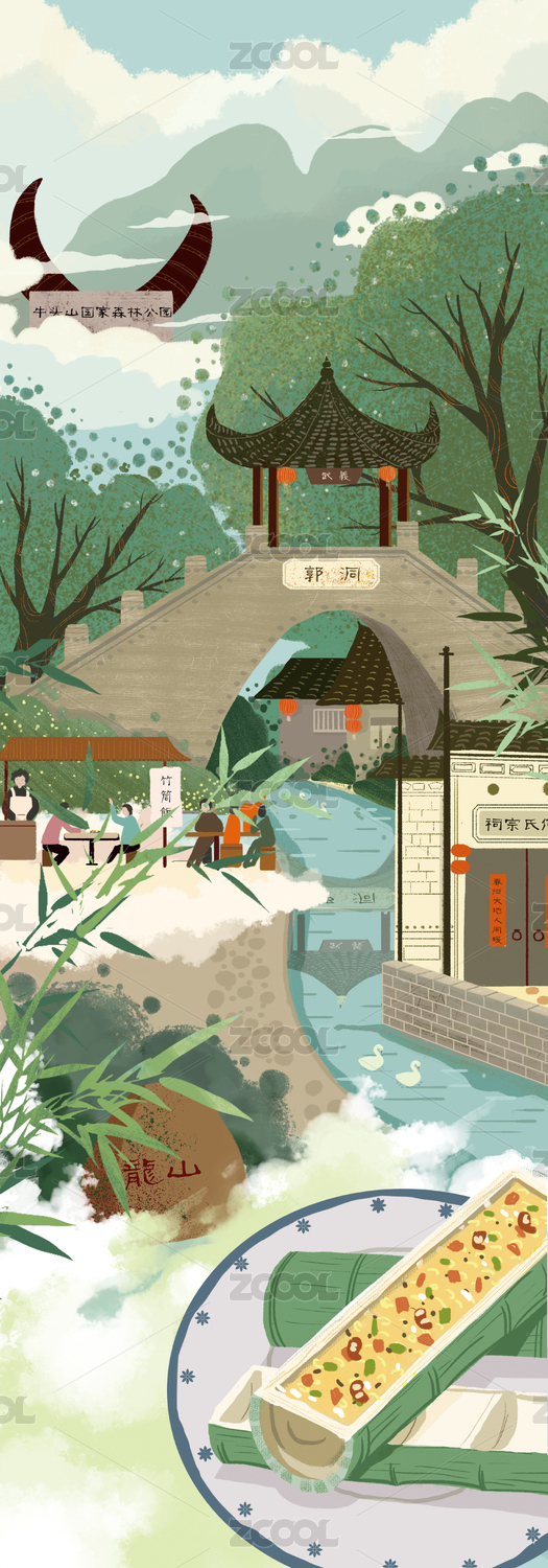 中式山水花鸟插画