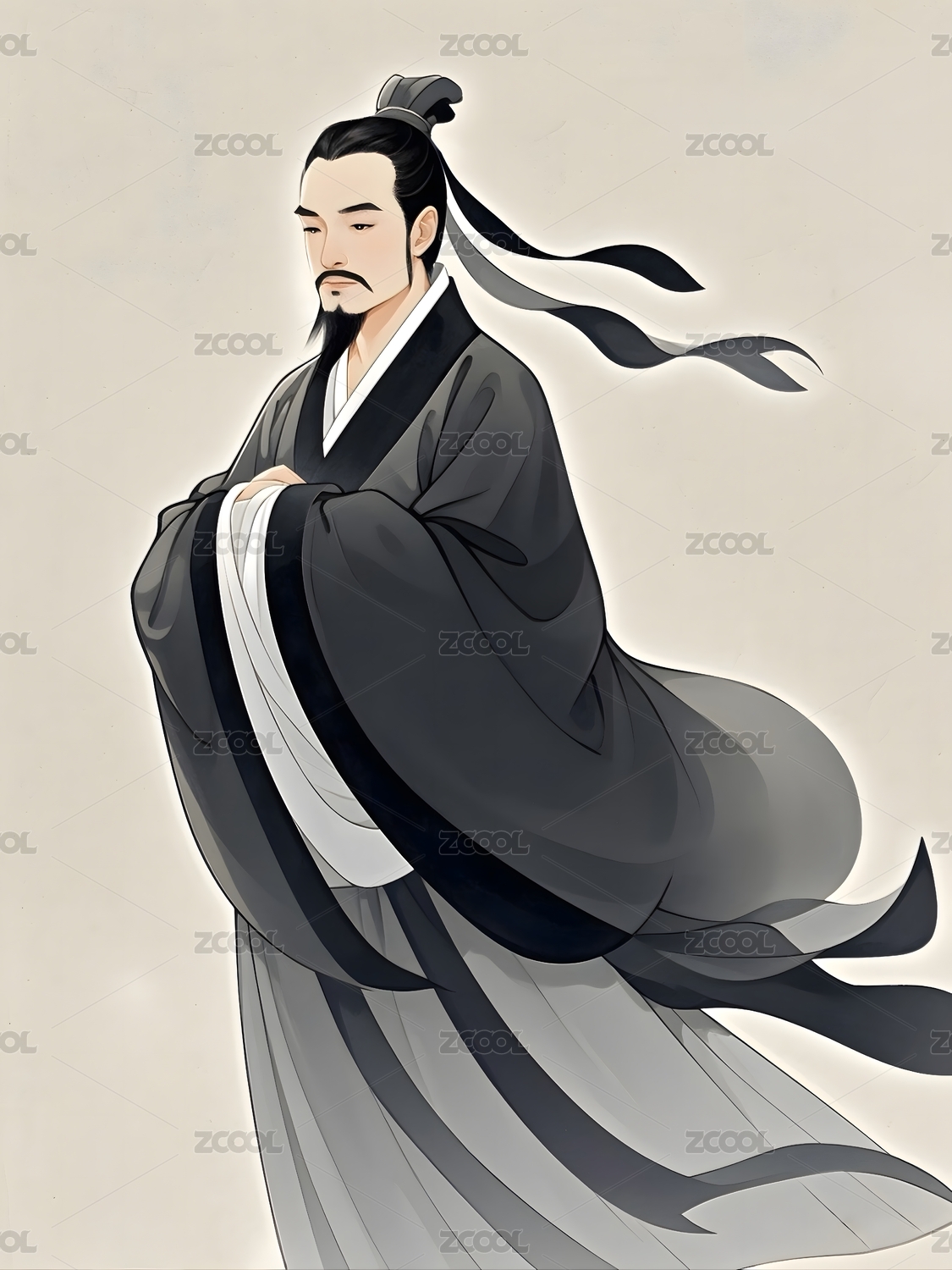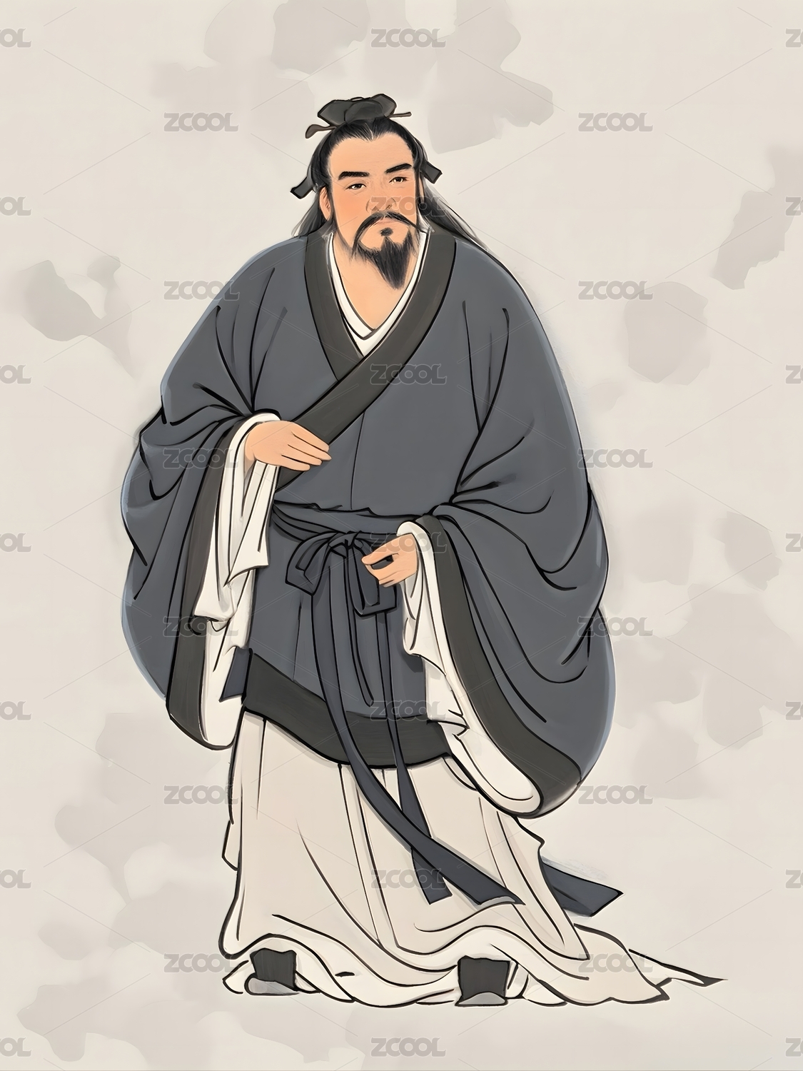 孟子儒家水墨风格人物肖像画