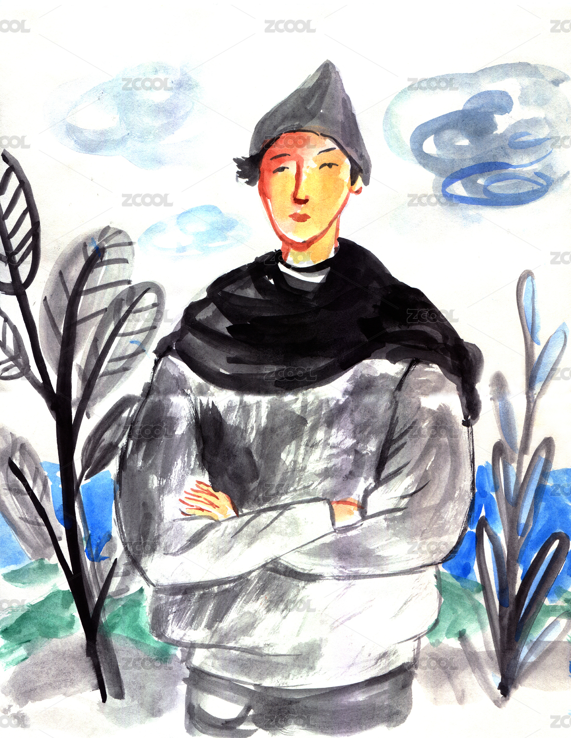 写意水彩人物