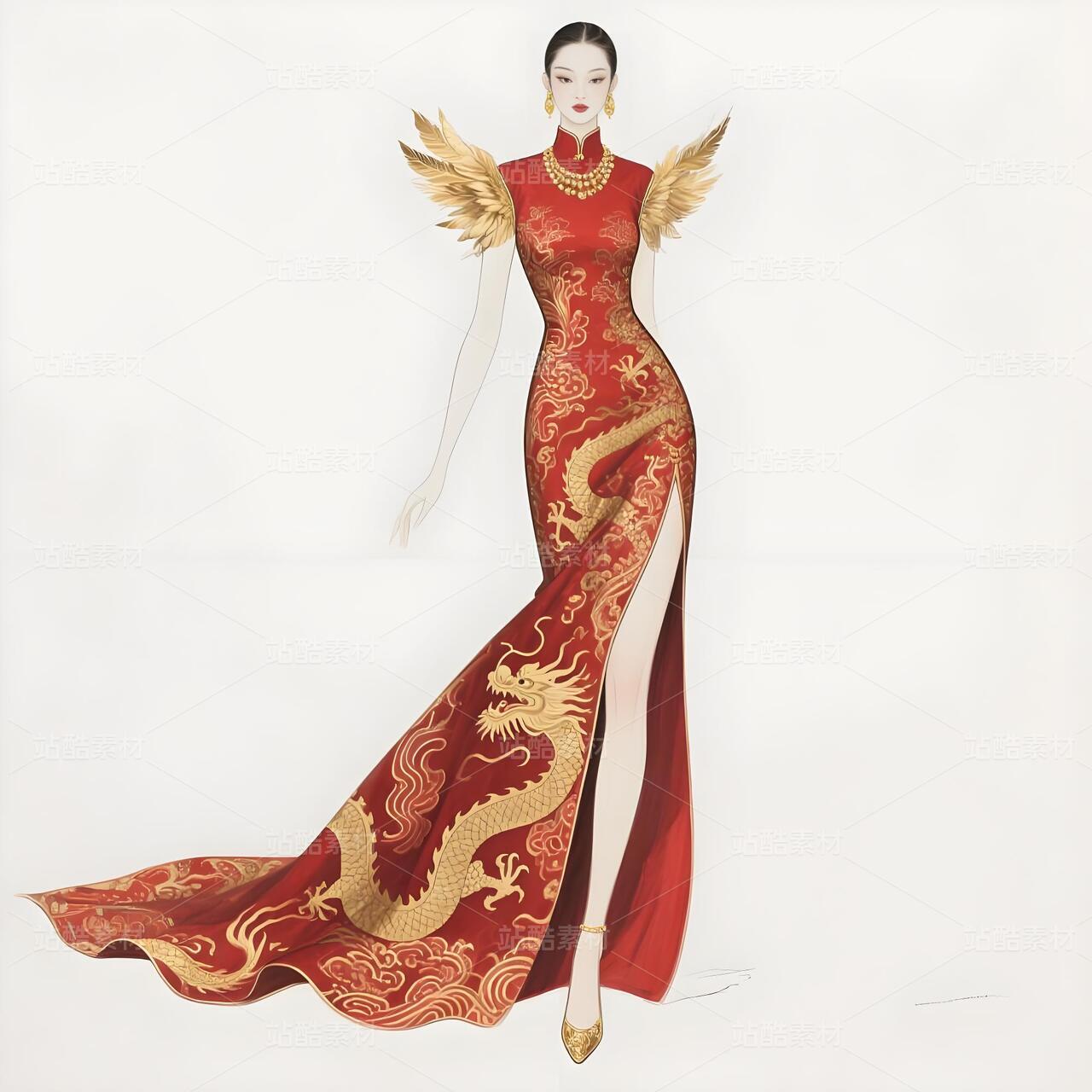 高定苗族扎染礼服设计手稿