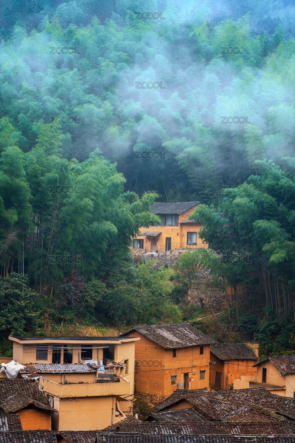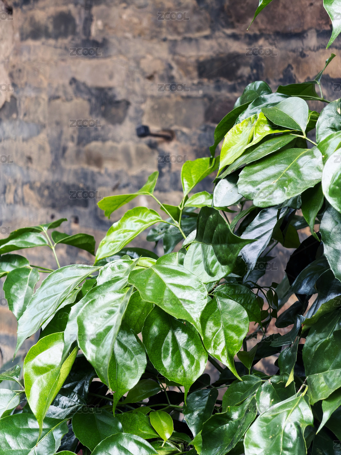 生长在中国南方古村落建筑里的绿色植物