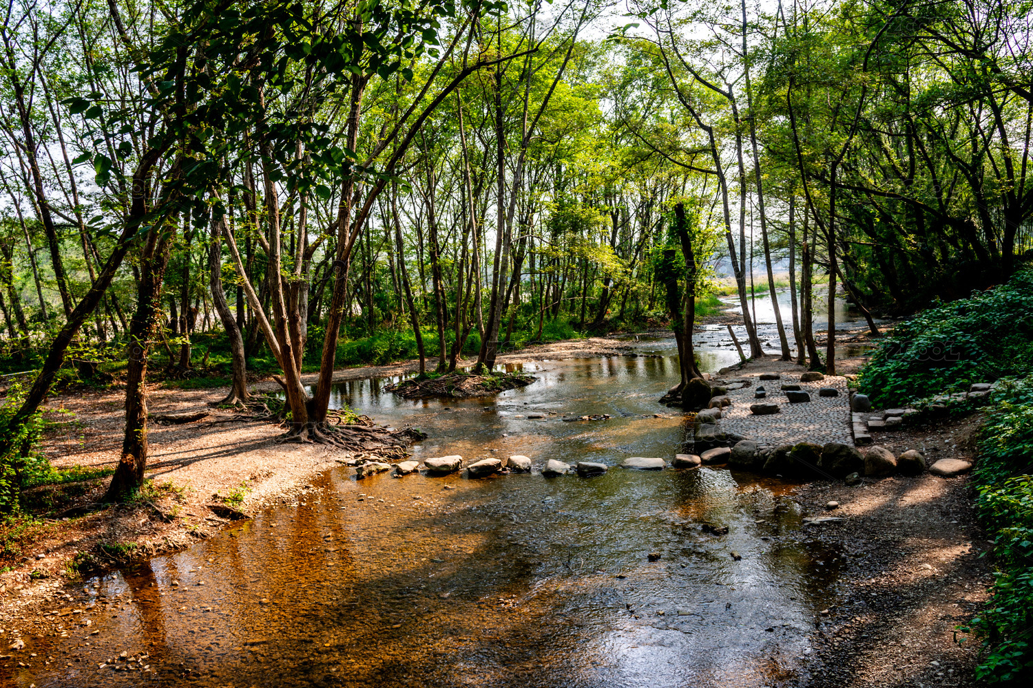 中国浙江宁波余姚中村古村溪流