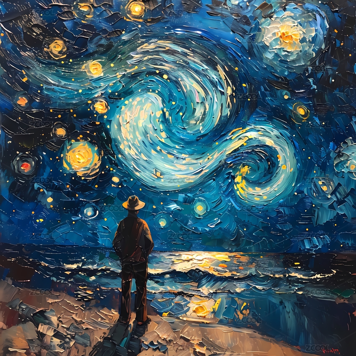 人物浪漫星空印象派装饰画壁纸