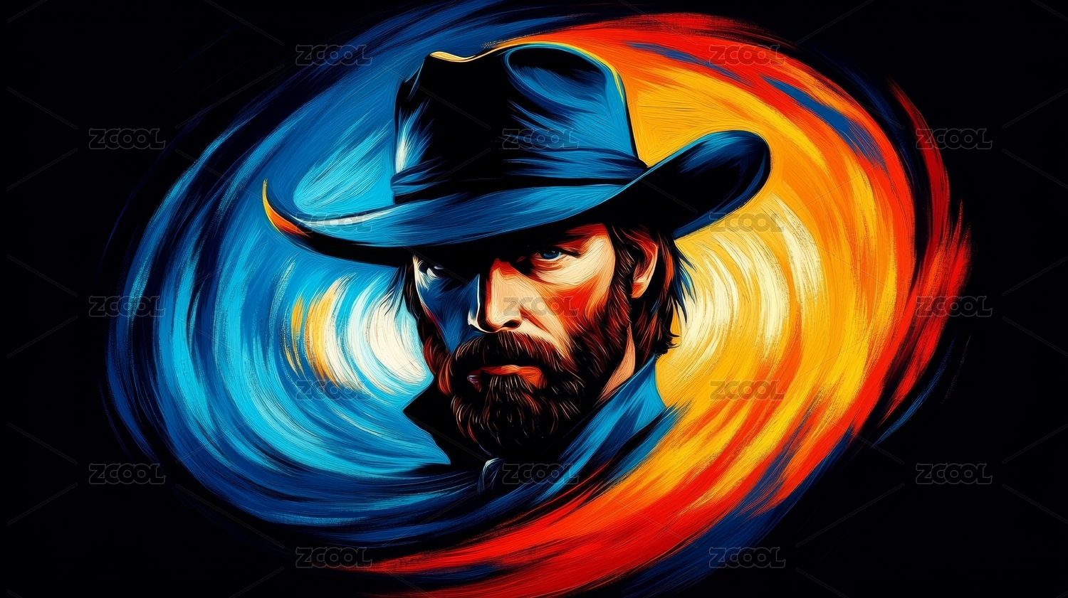 西部牛仔肖像油画