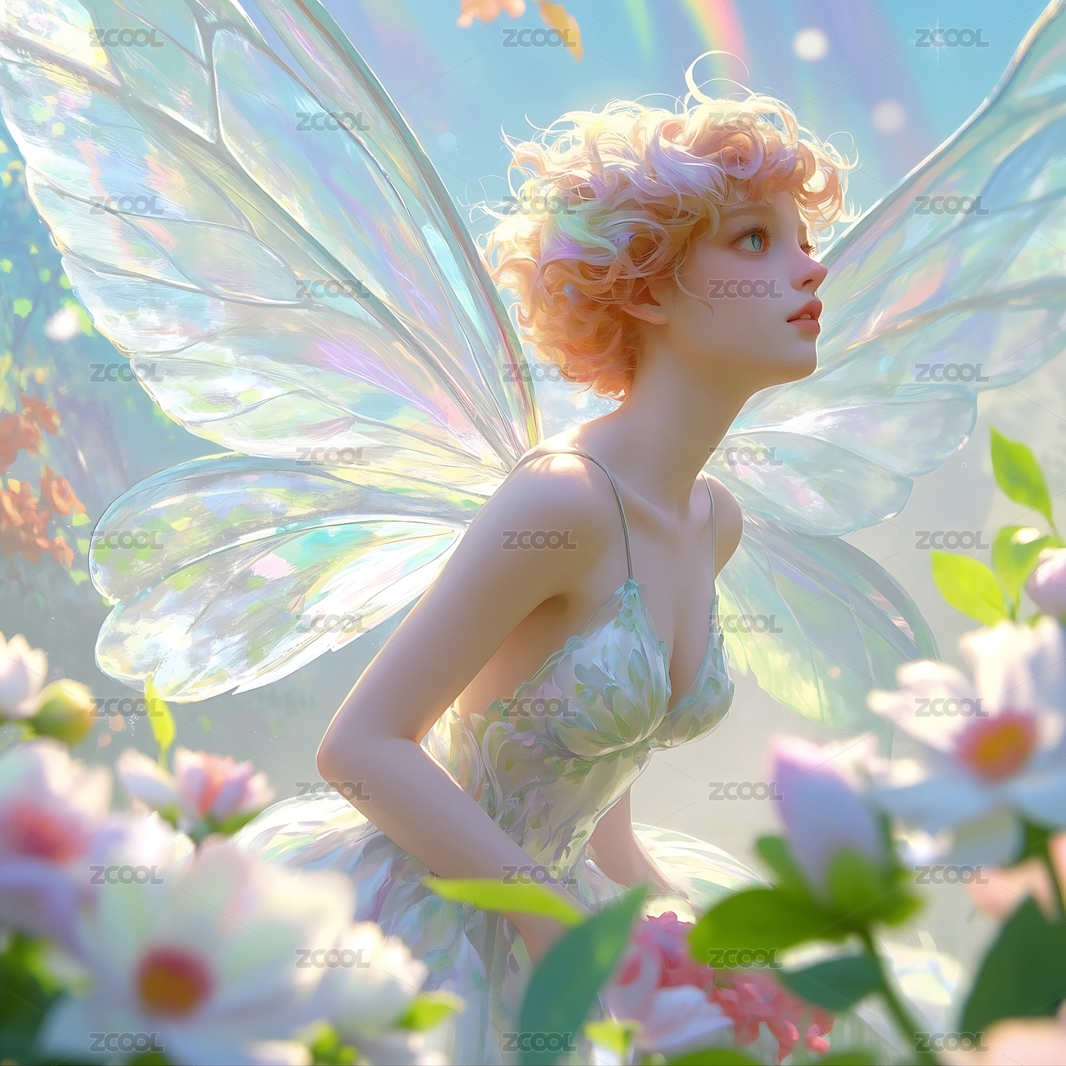 唯美精灵花朵梦幻手绘插画
