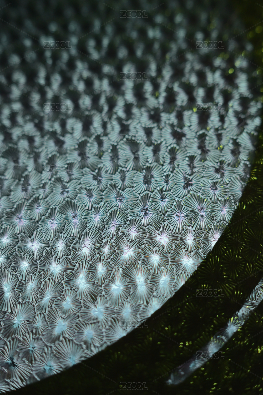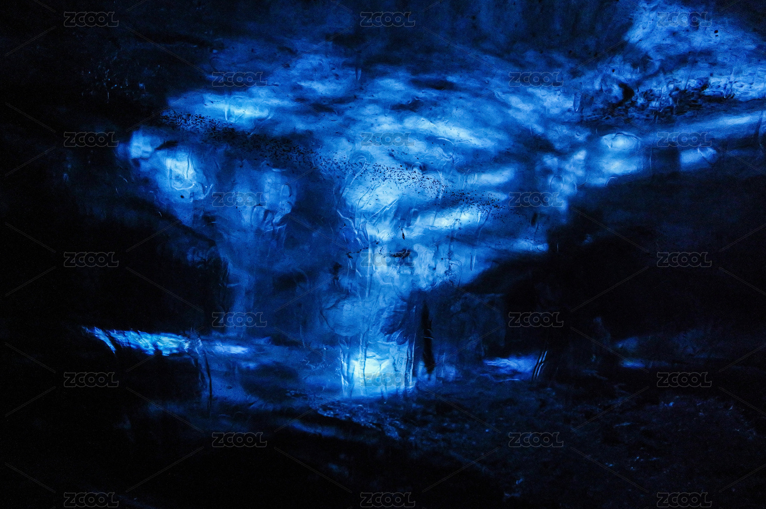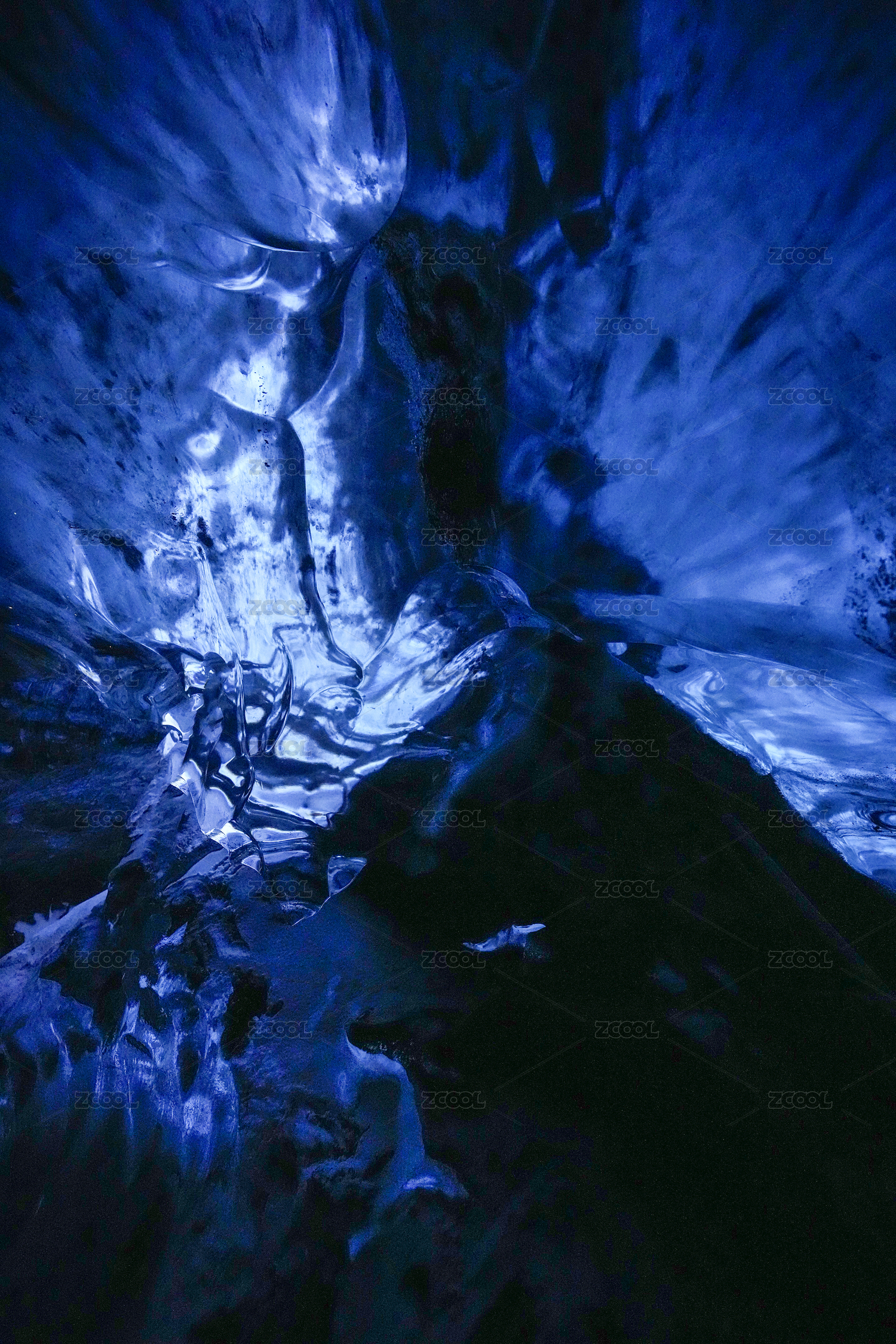 通透的冷蓝色雕花玻璃