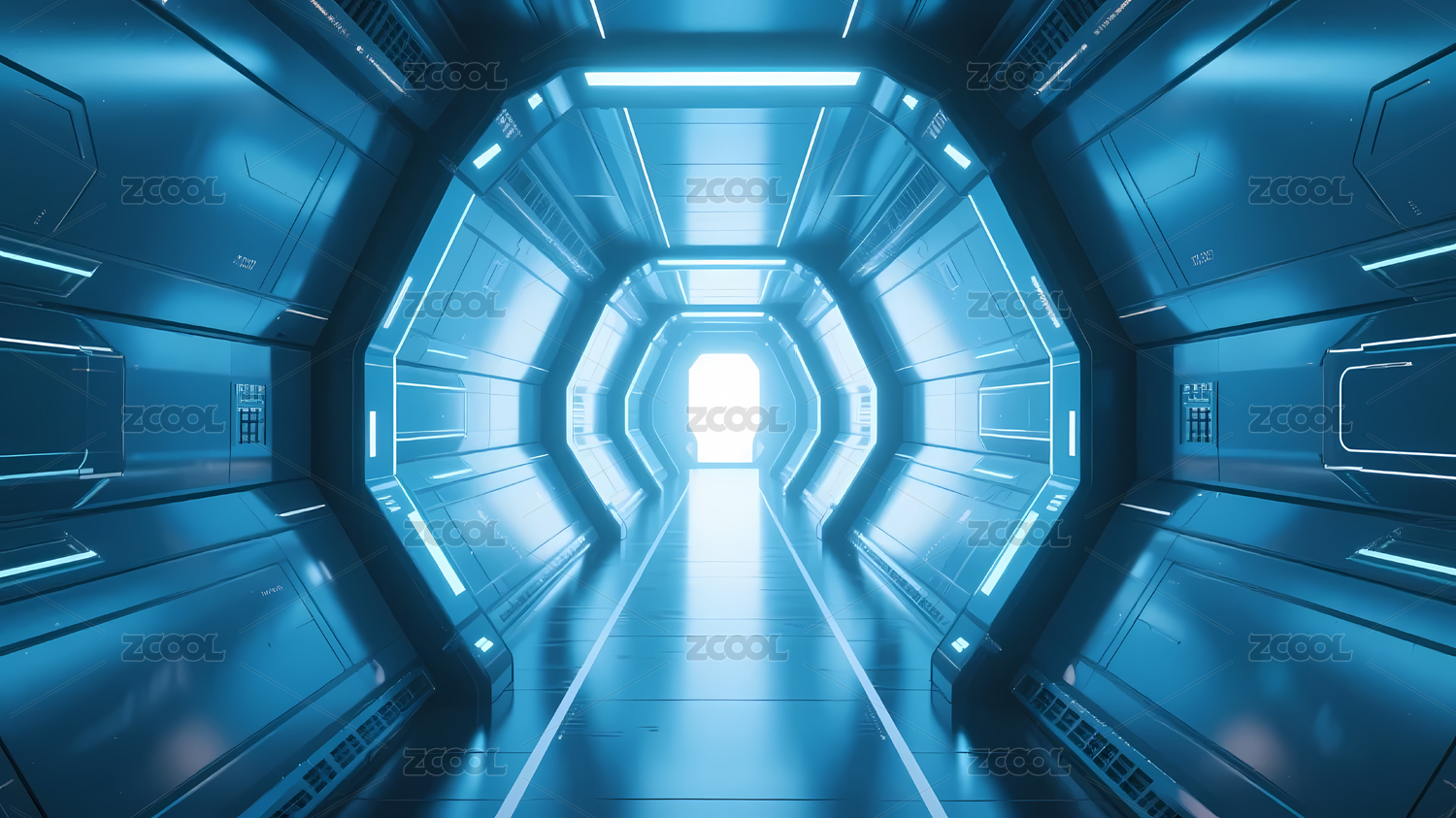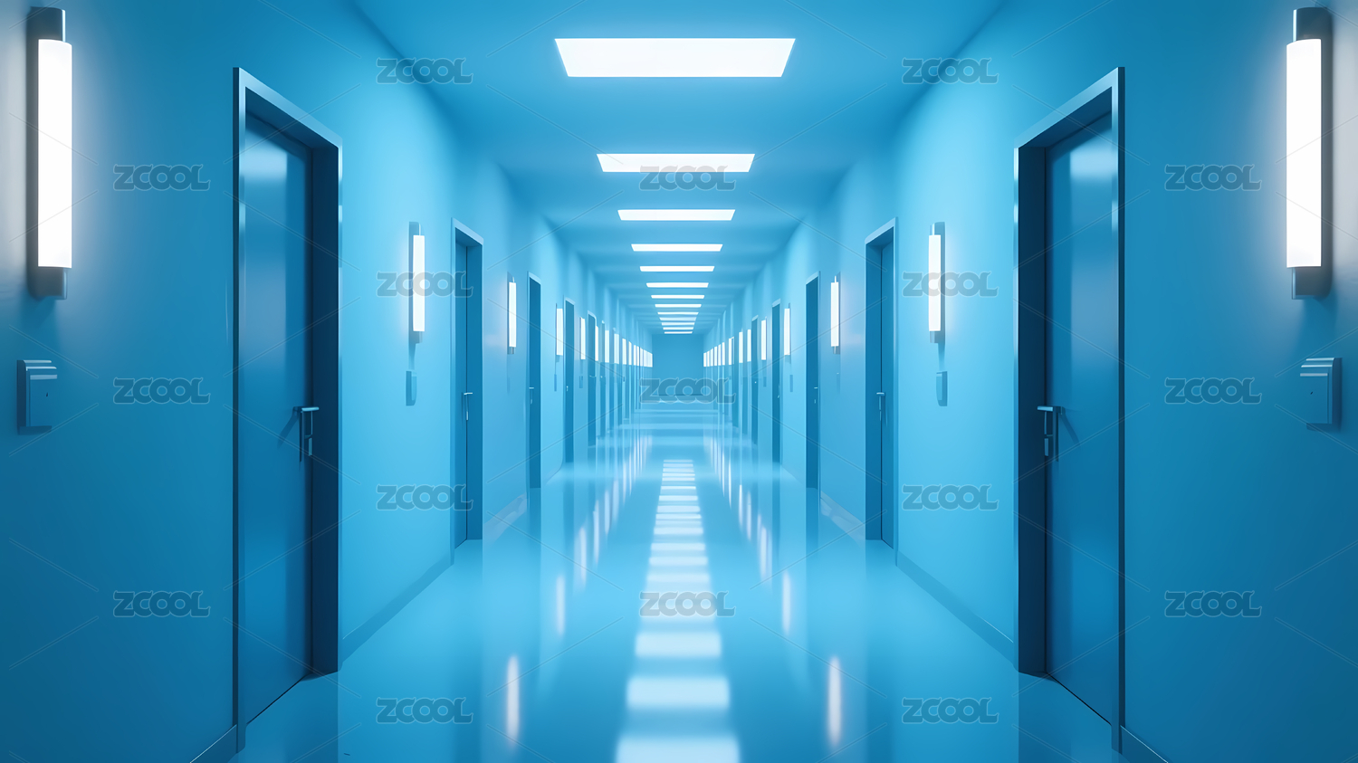 冷蓝色调的现代走廊