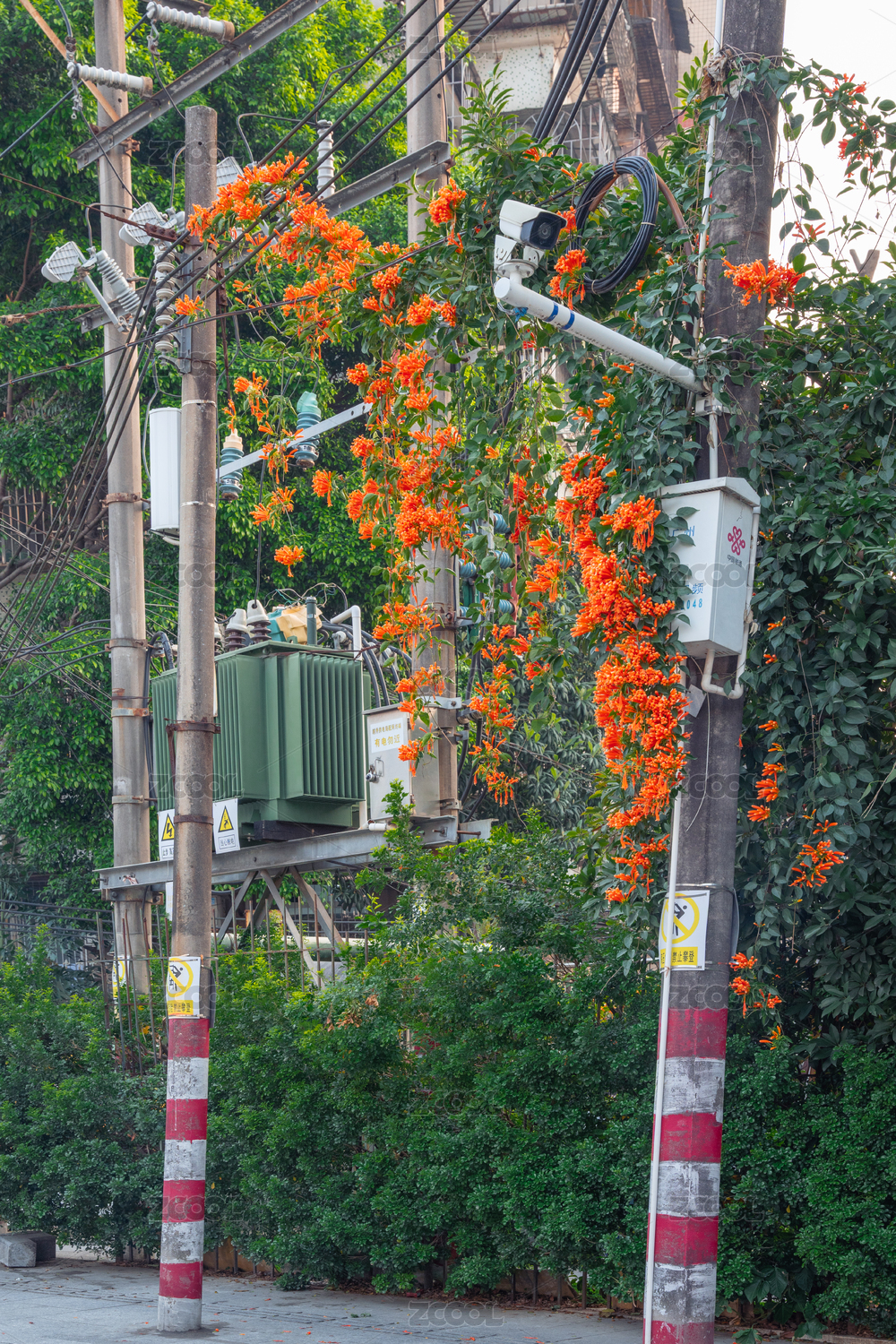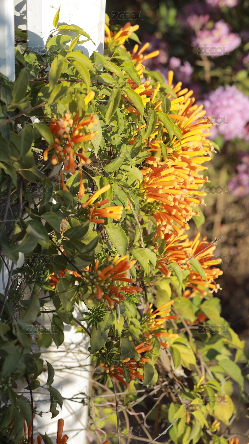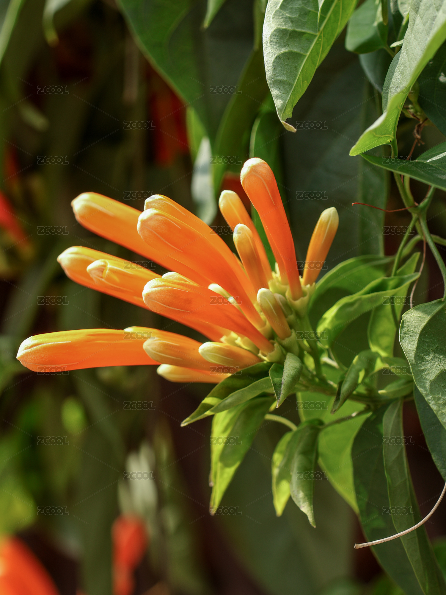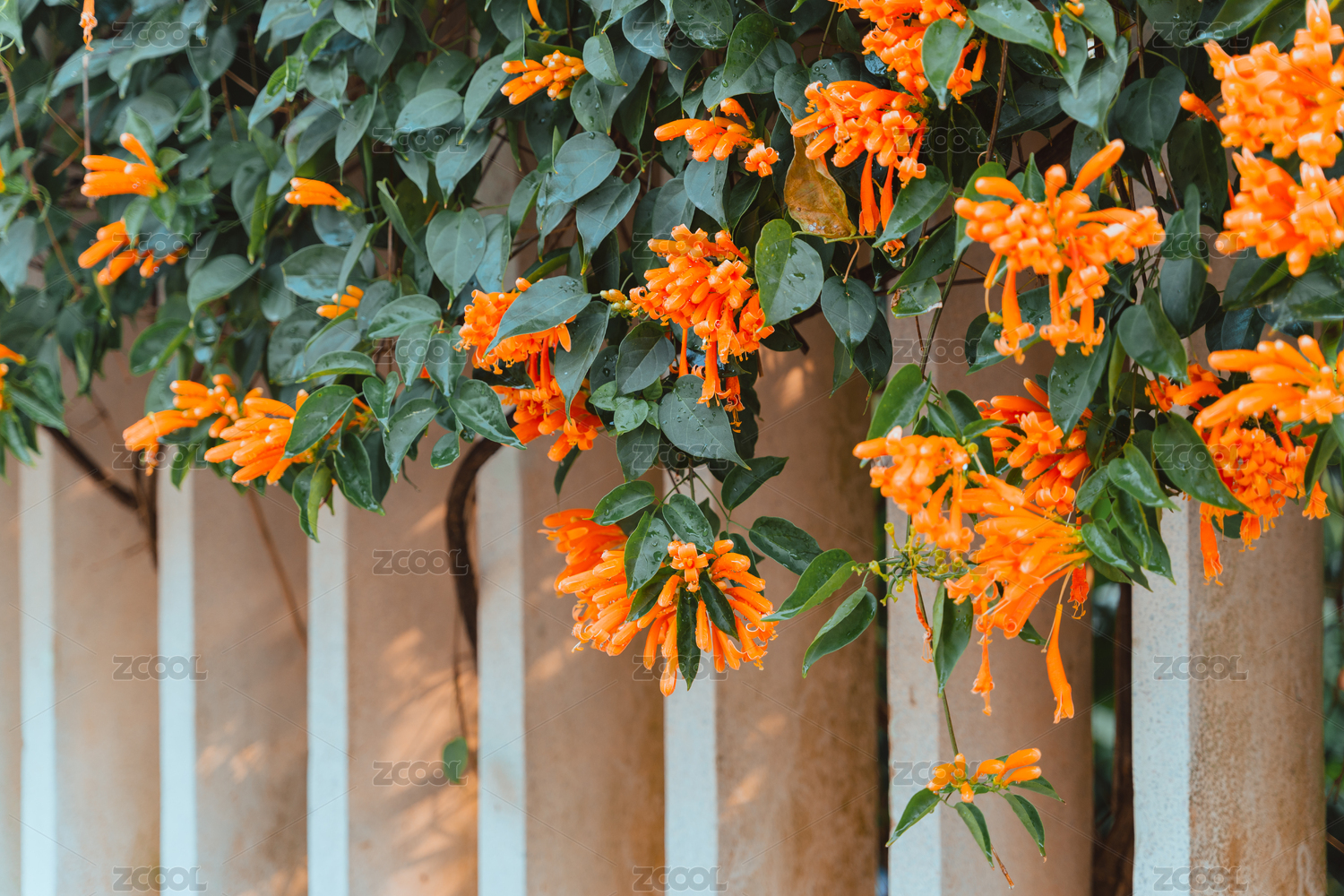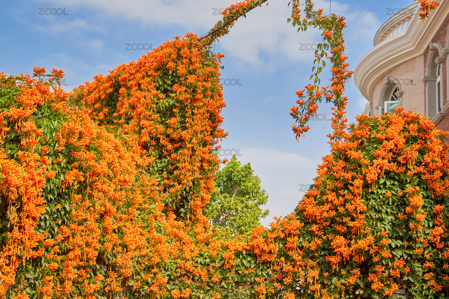 厦门鼓浪屿岛上盛开的一片炮仗花特写