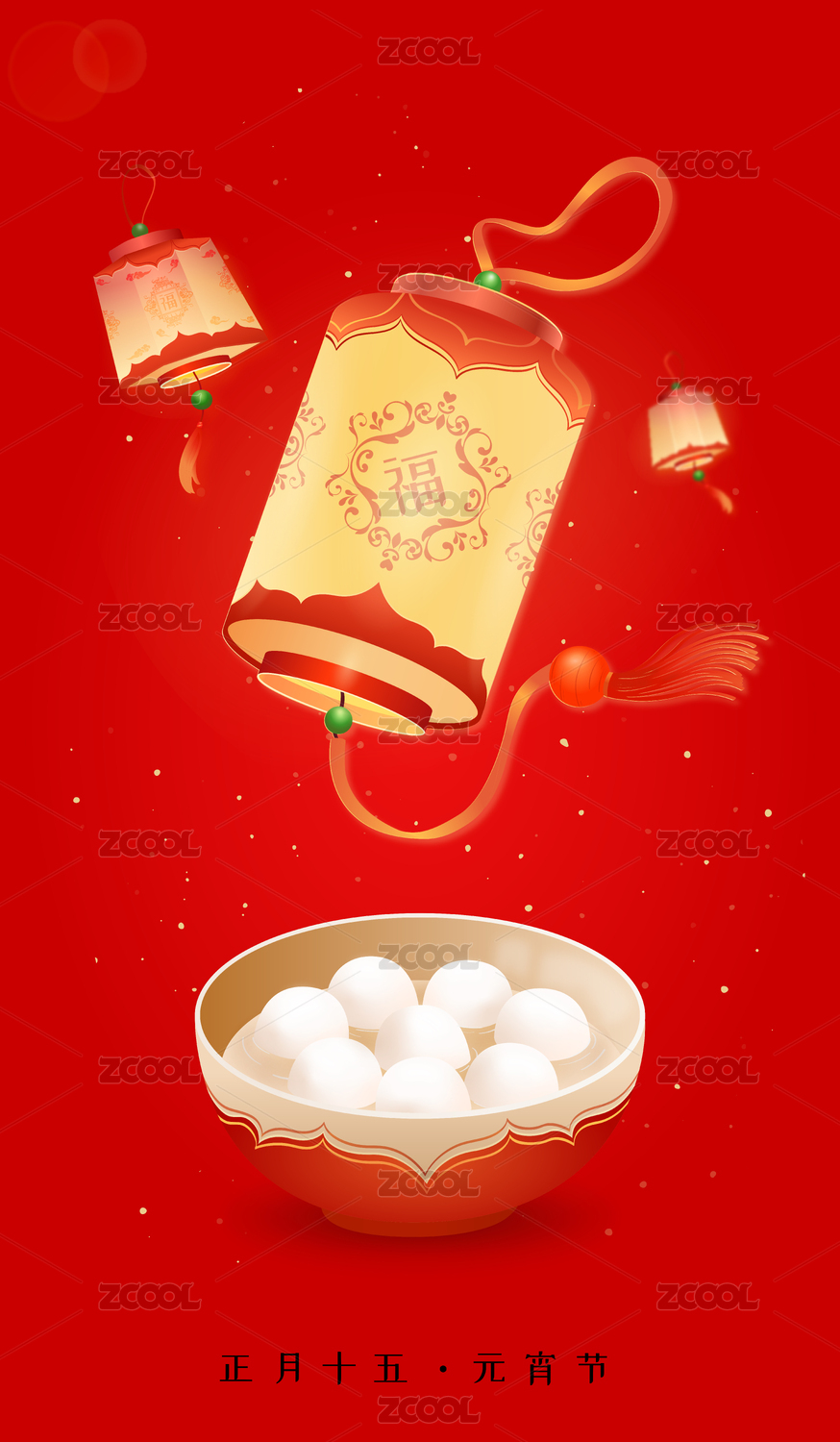 正月十五元宵节吃汤圆过小年矢量海报素材