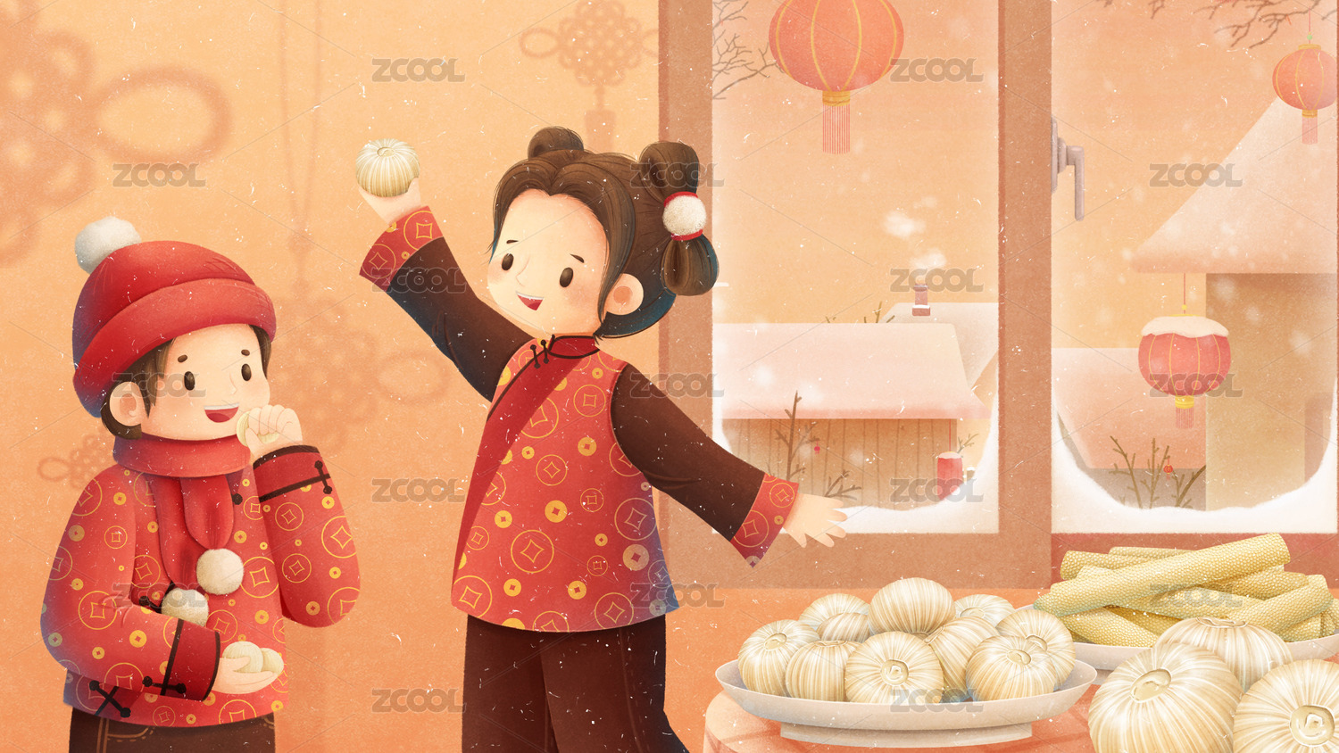 冬日孩童吃糖瓜过小年