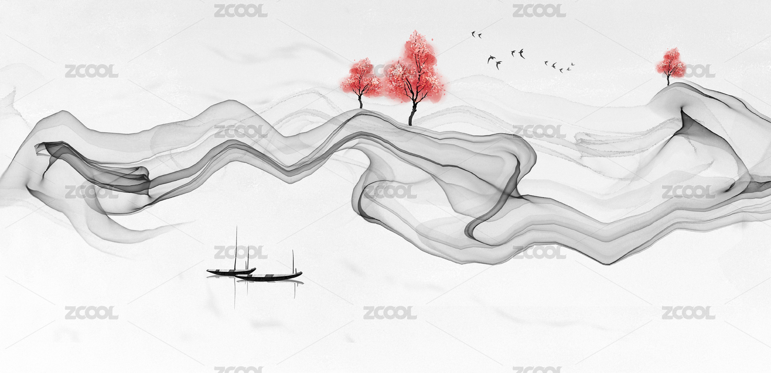 水墨装饰画杂志封面壁画装饰画高端杂志封面文旅海报