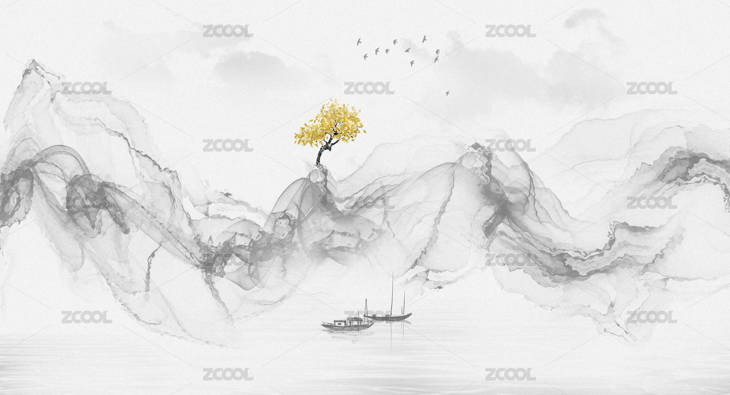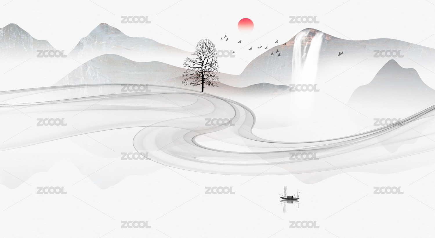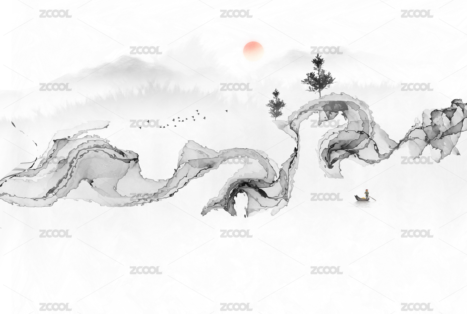 水墨装饰画杂志封面壁画装饰画高端杂志封面文旅海报