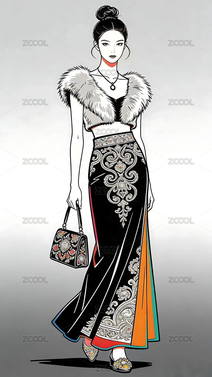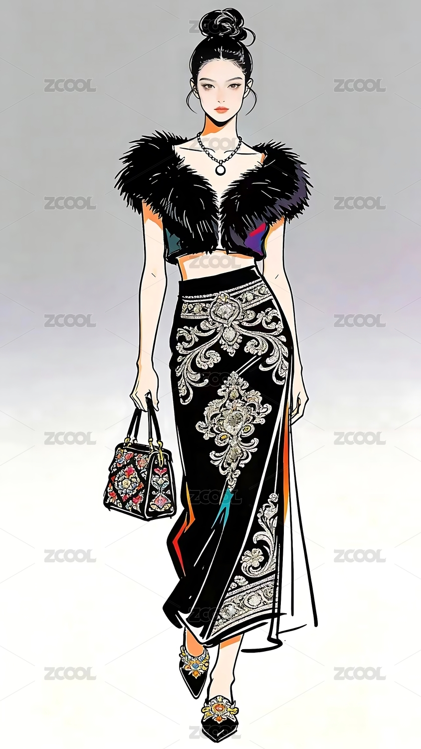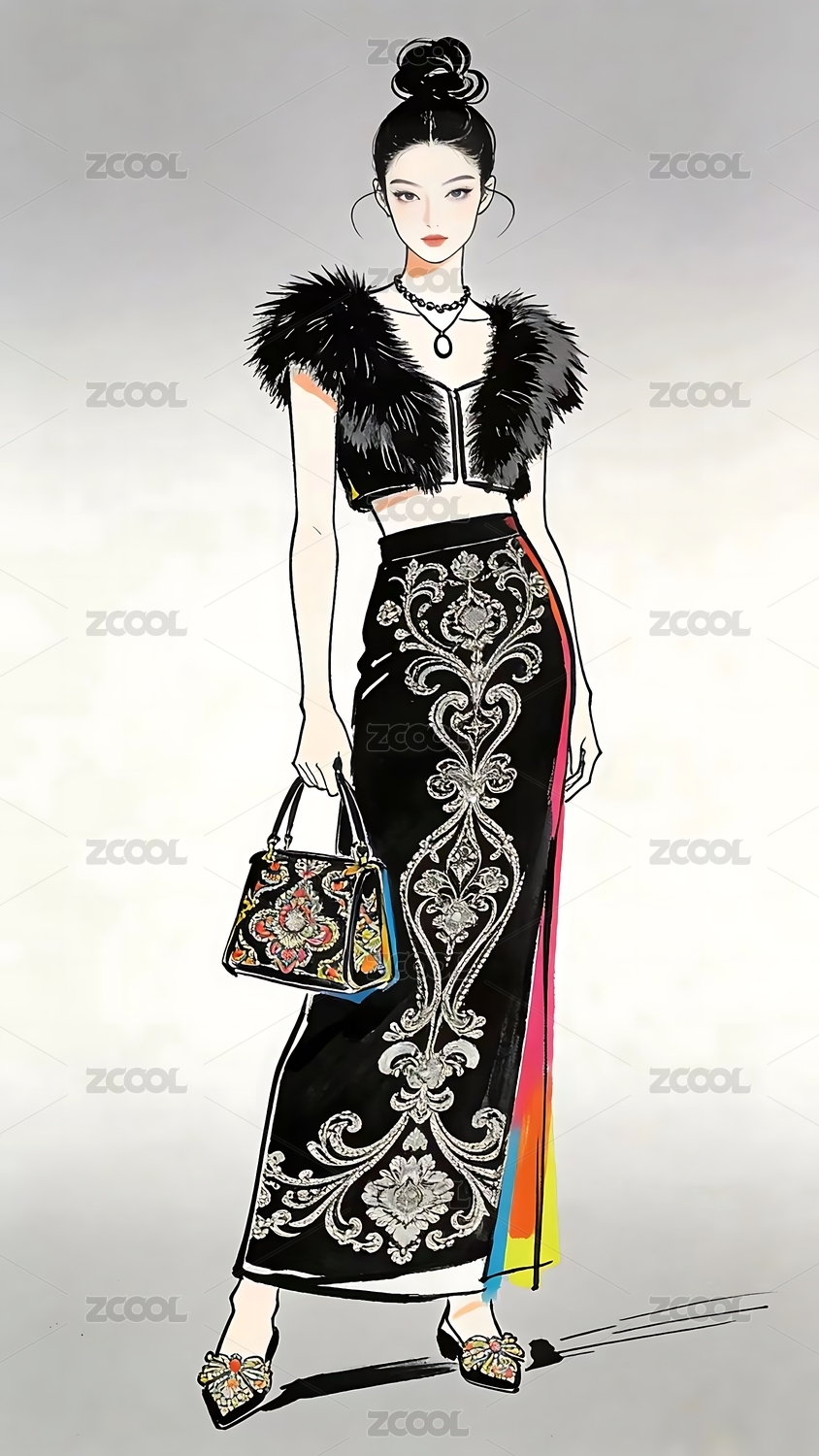 水墨人物装饰画服装杂志封面文旅海报宣传画时尚服装画