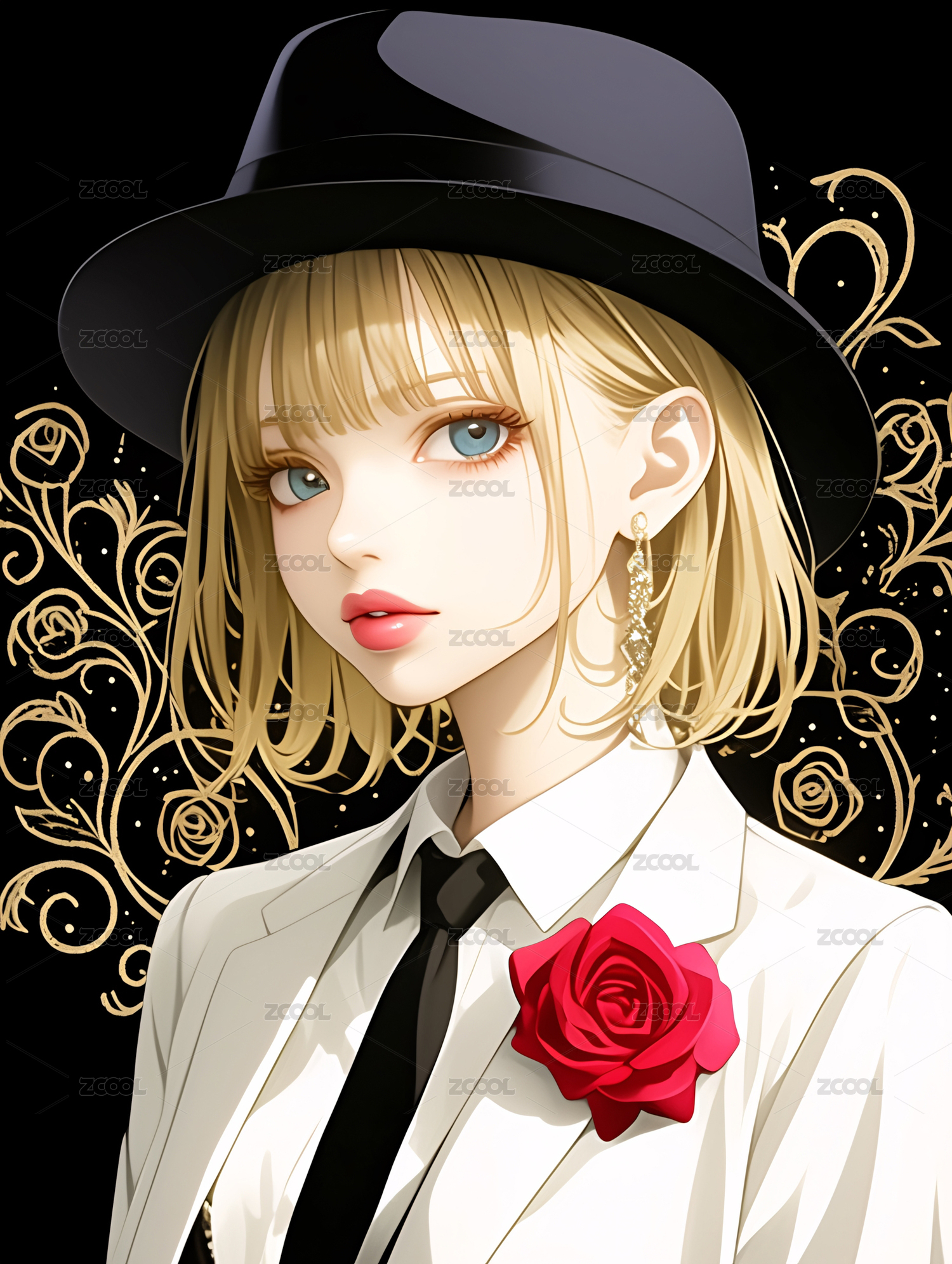 黑色礼帽下的优雅女子